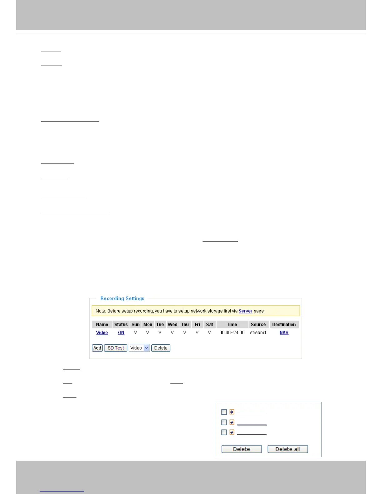 ■ Schedule: The server will start to record les on the local storage or network storage (NAS).