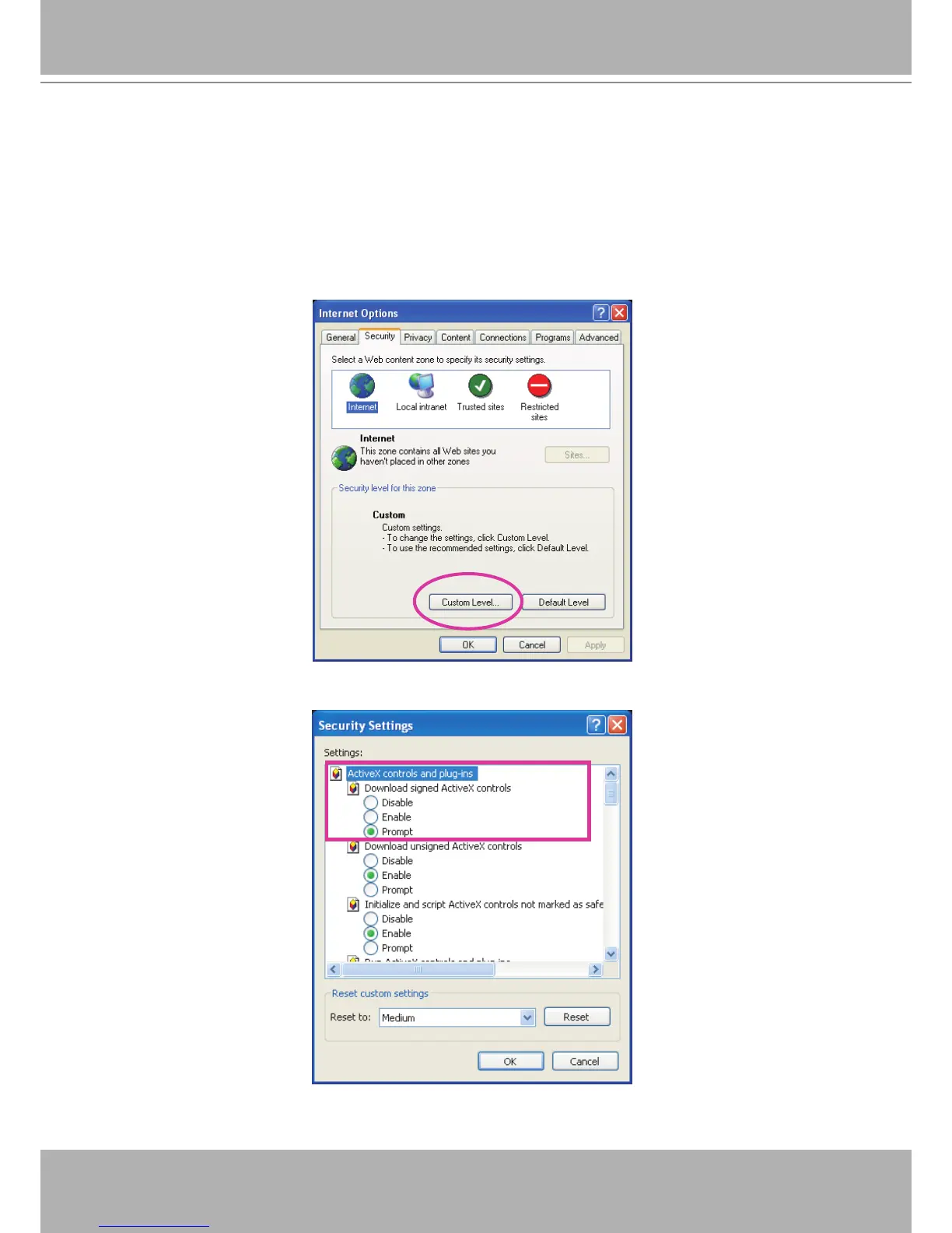 1� Choose Tools > Internet Options > Security > Custom Level�