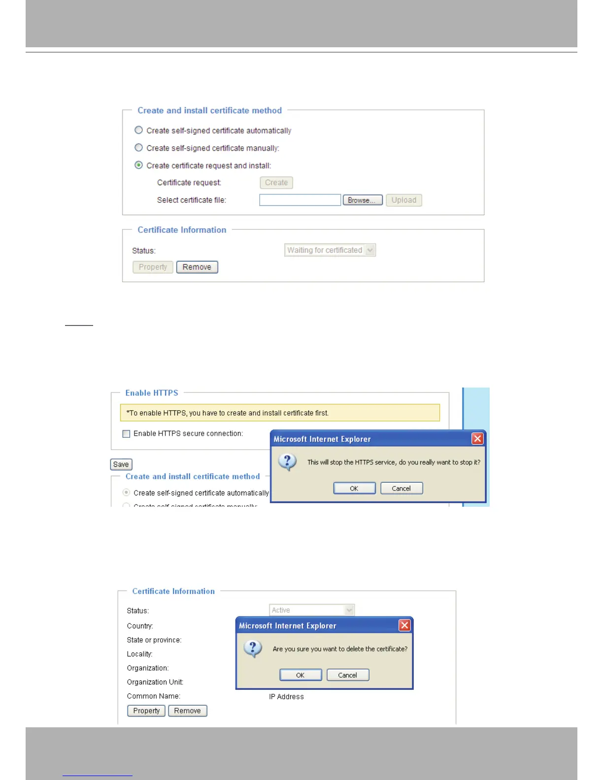 ► If you want to create and install other certificates, please remove the existing one. To remove the