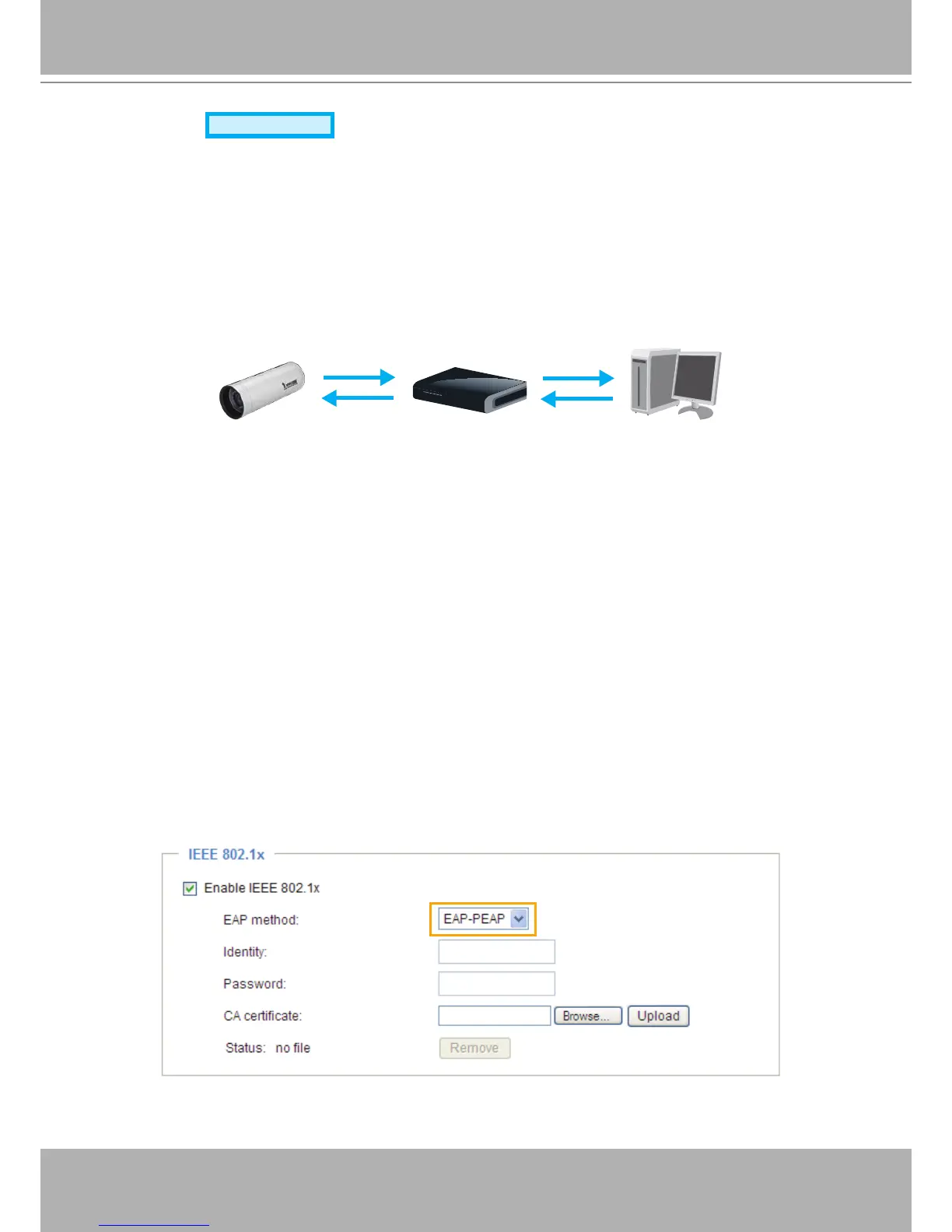 conguration page of the Network Camera as shown below. Select EAP-PEAP or EAP-TLS as the