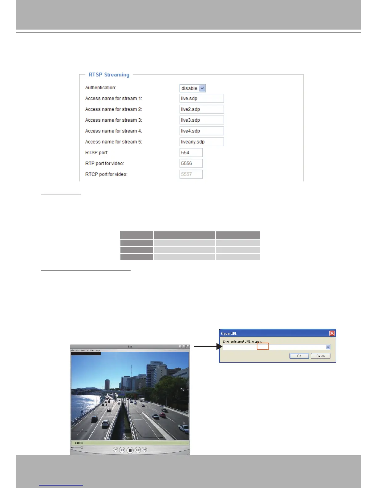 H�264 / MPEG-4 and use the following RTSP URL command to request transmission of the streaming