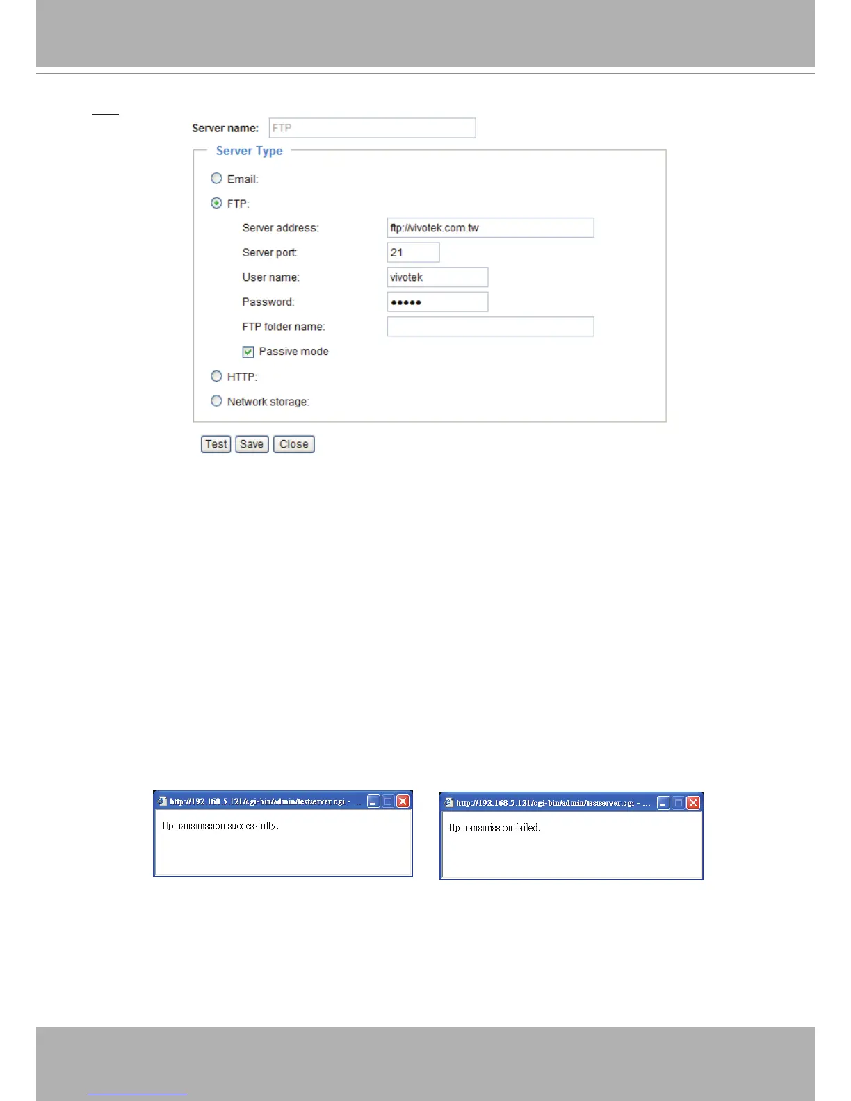 To verify if the FTP settings are correctly congured, click Test� The result will be shown in a pop-up
