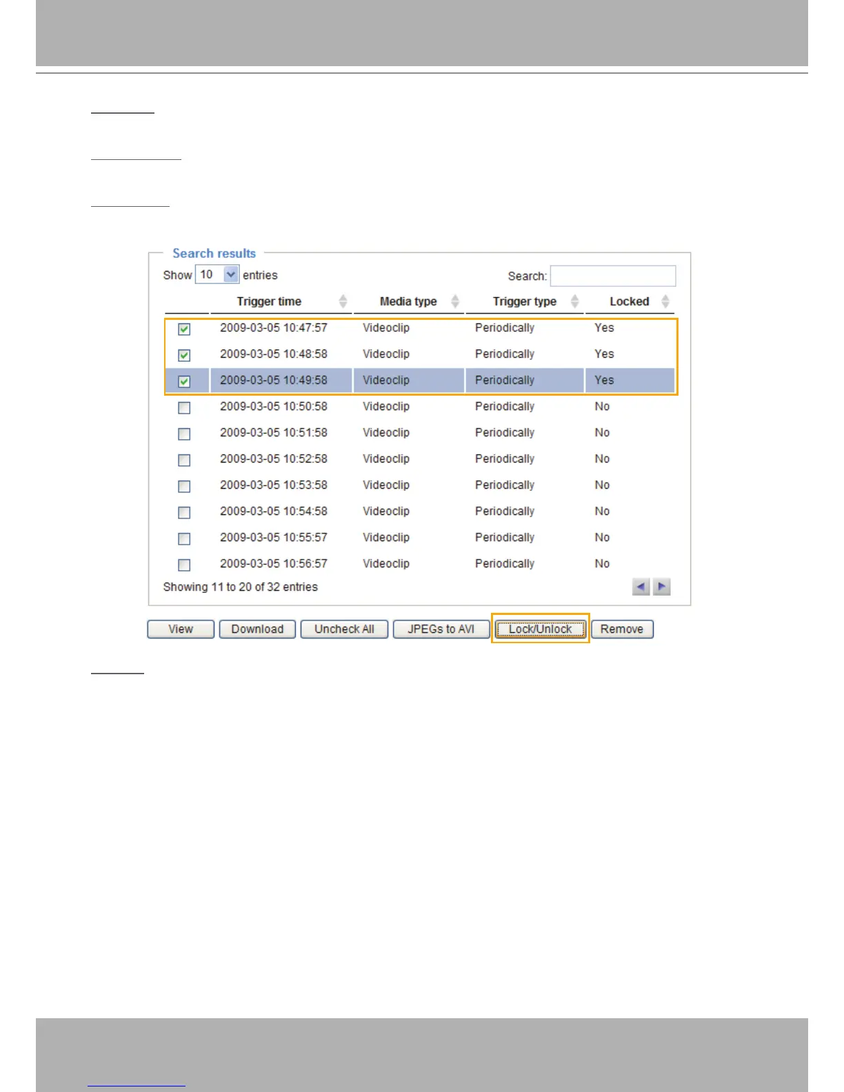 Lock/Unlock: Select the desired search results, then click this button� The selected items will become