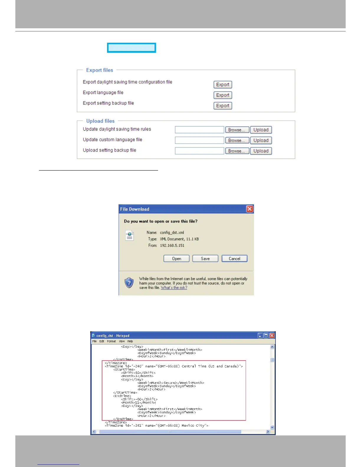 Export daylight saving time conguration le: Click to set the start and end time of DST�
