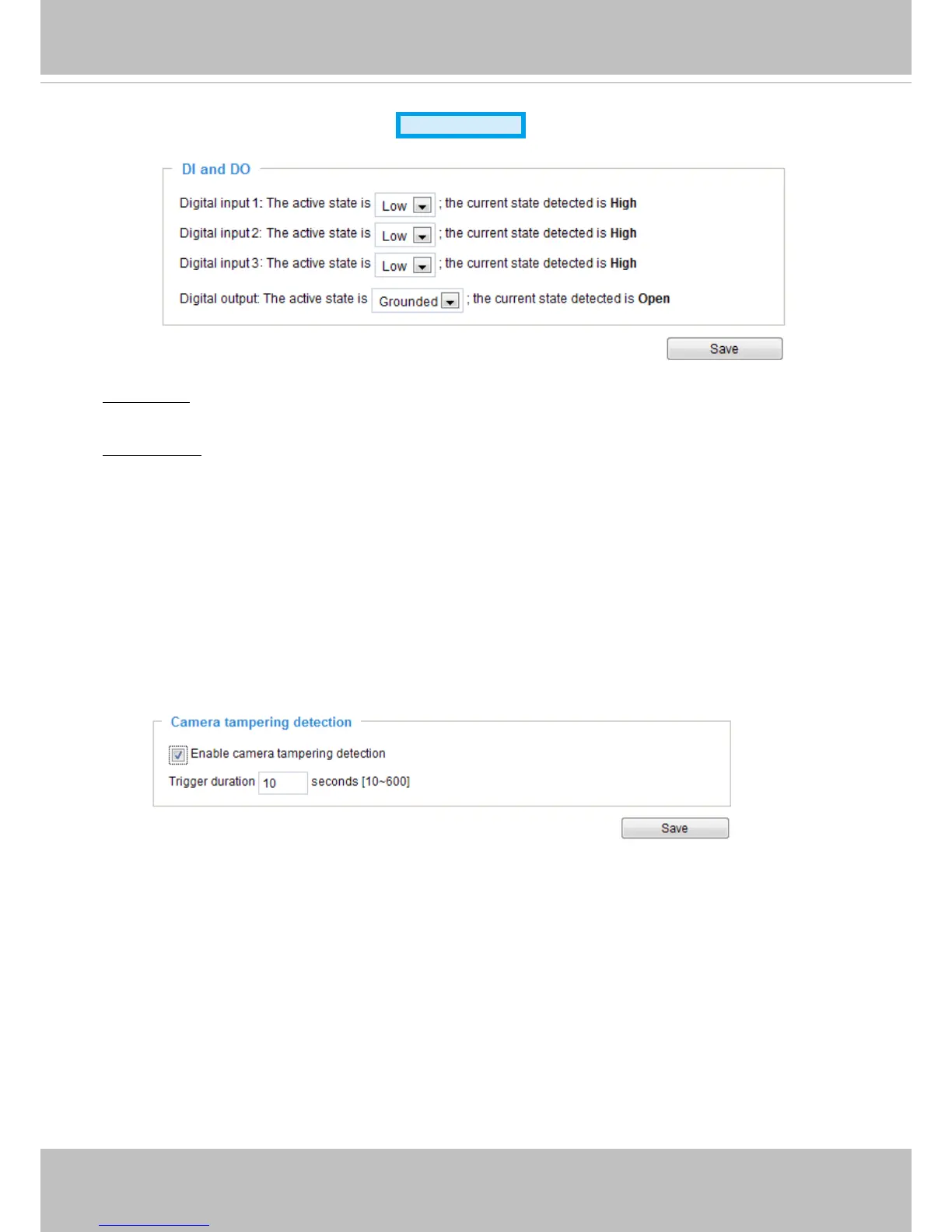 Digital input: Select High or Low to dene the activatation condition for the digital input. The Network