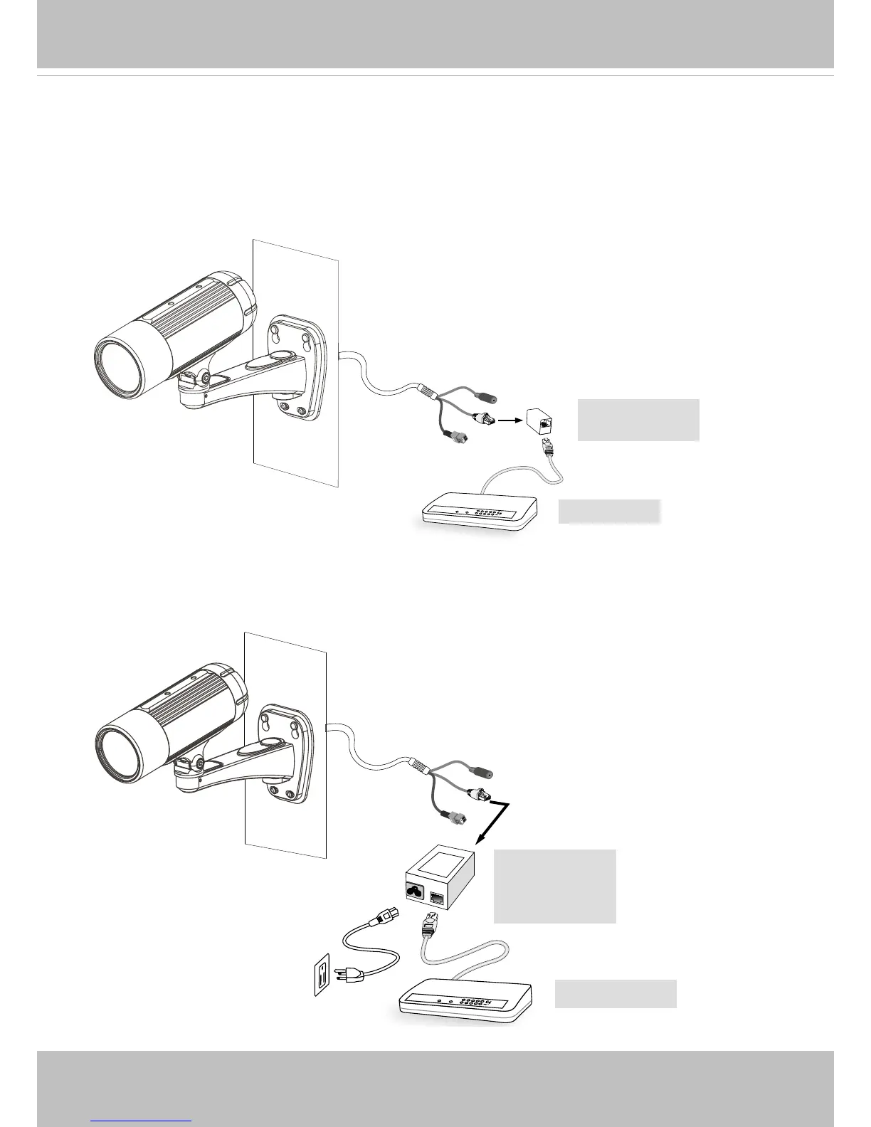 Ethernet cable. Follow the below illustration to connect the Network Camera to a PoE-enabled