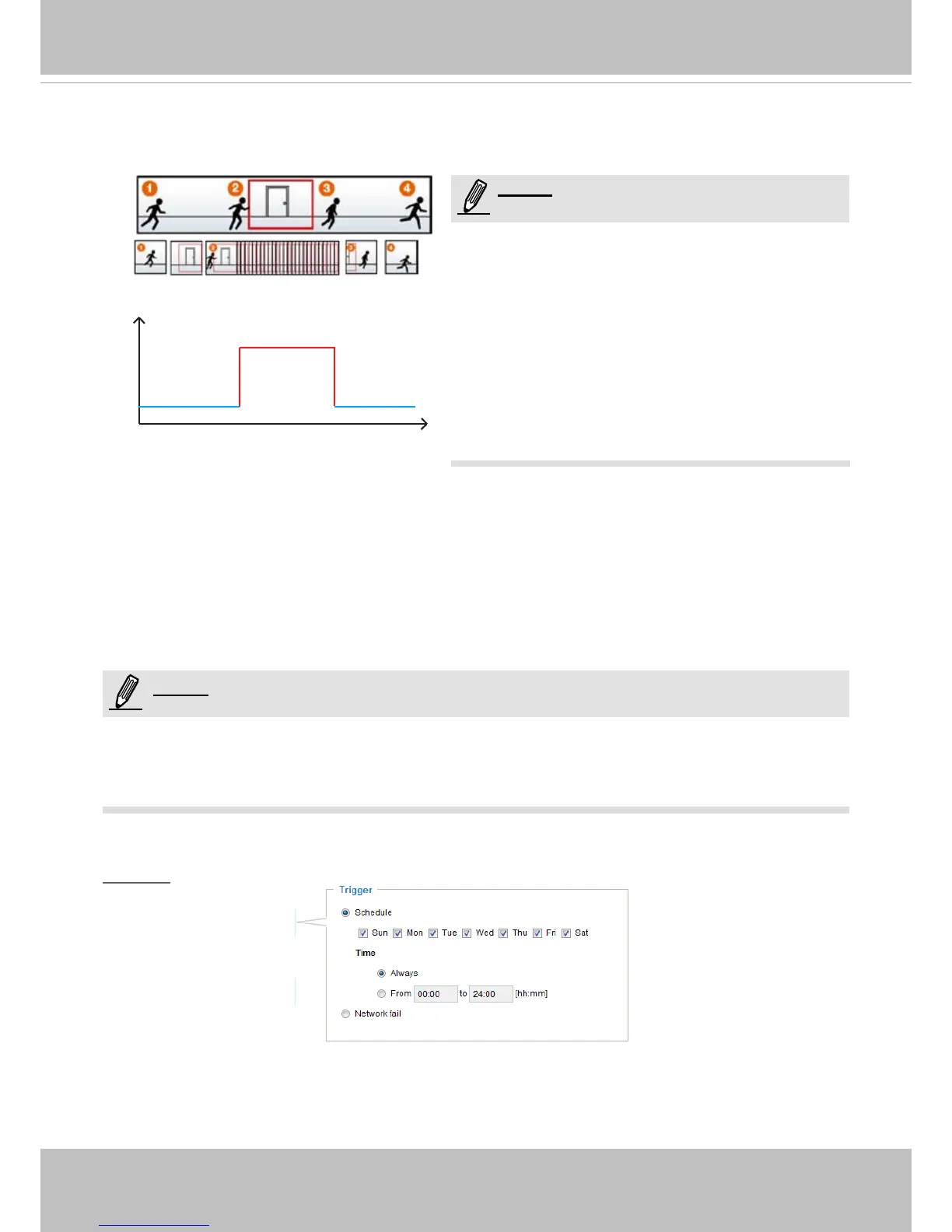 The alarm trigger includes: motion detection and DI detection� Please refer to Event settings on page 92�
