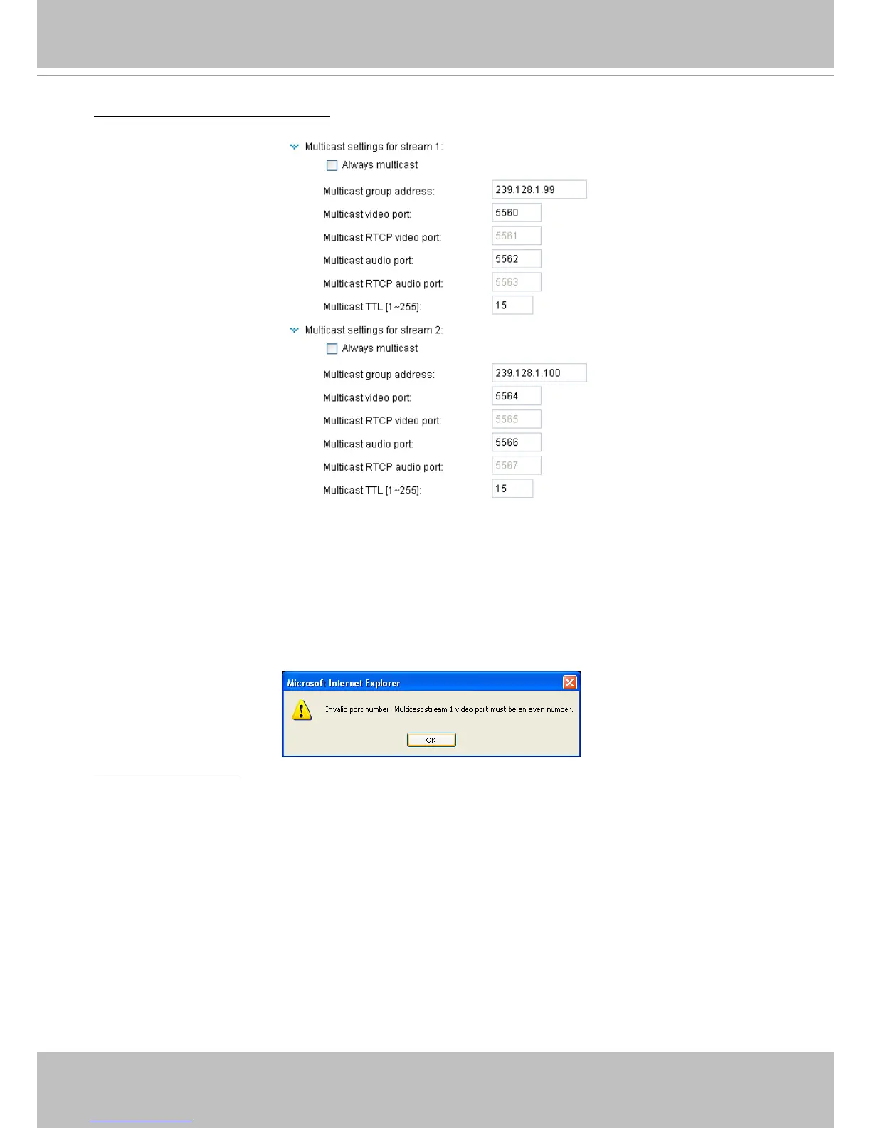 If the multicast RTP video ports are incorrectly assigned, the following warning message will be