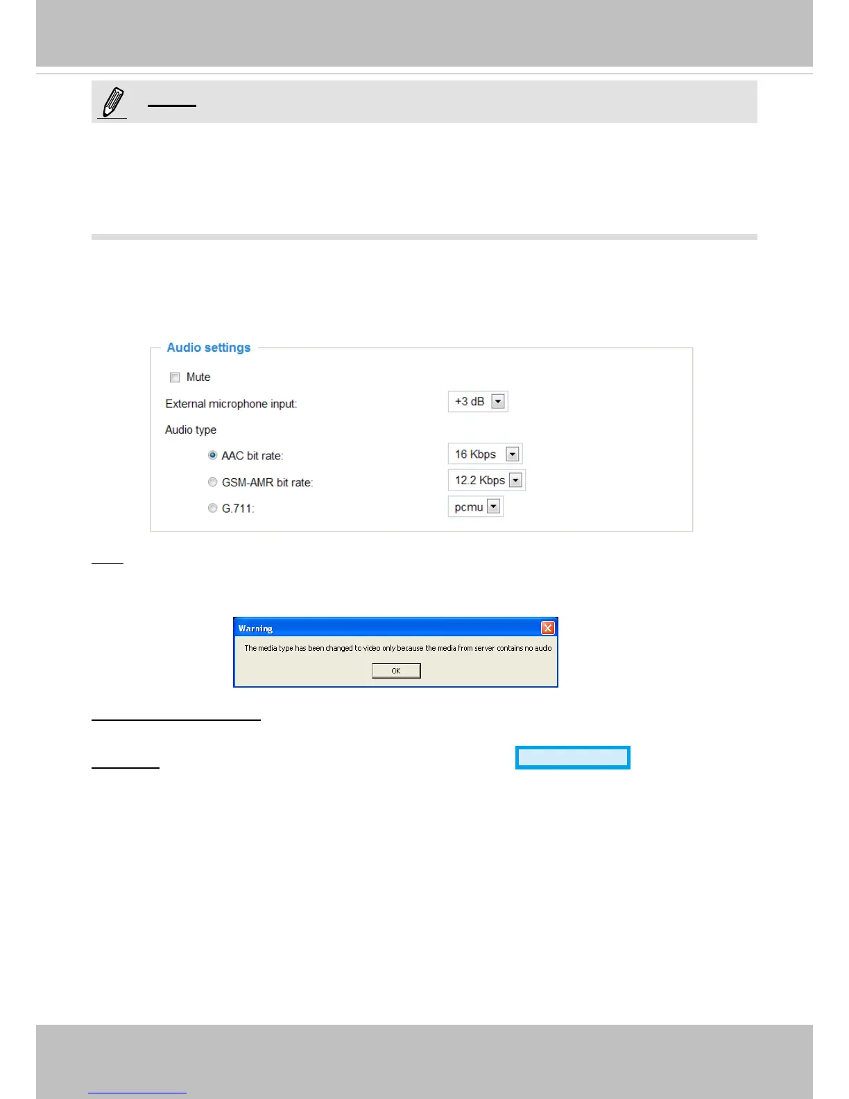 Audio type: Select audio codec AAC or GSM-AMR and the bit rate