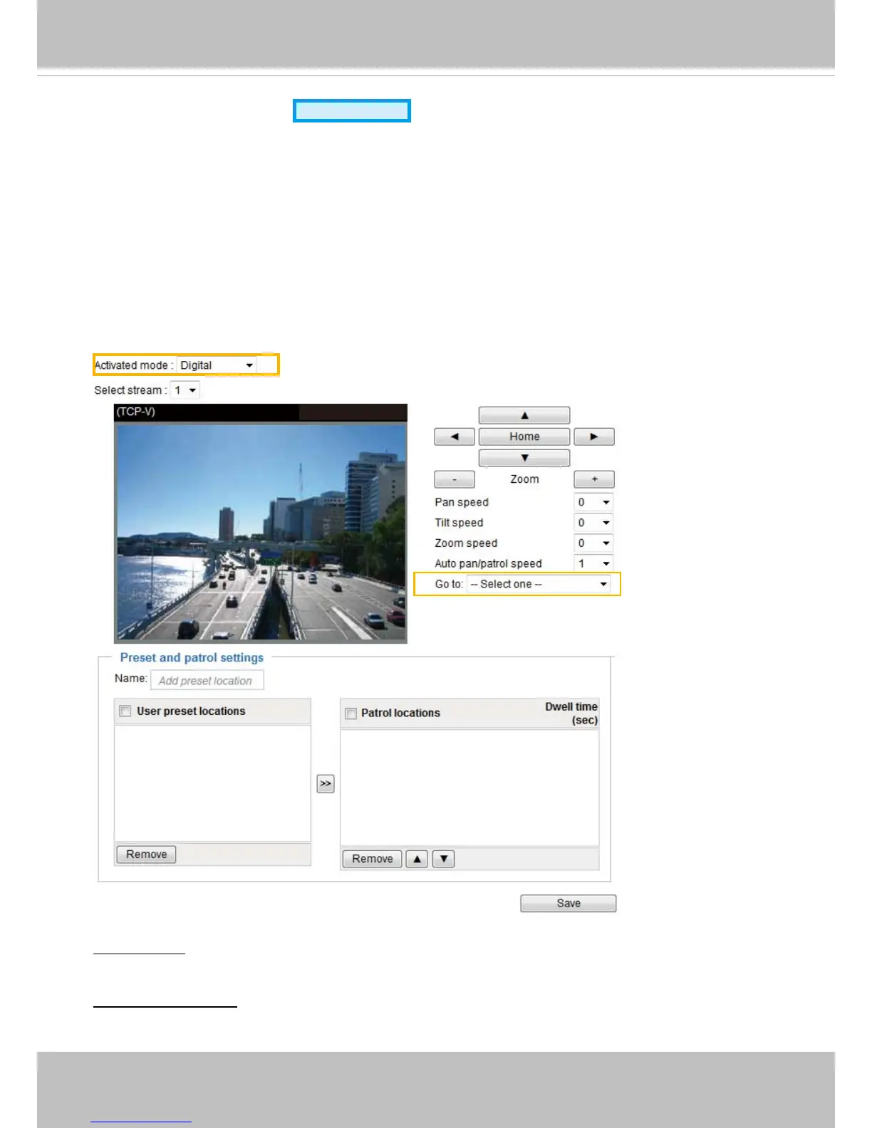 Digital: Control the e-PTZ operation� It allows users to quickly move the focus to a pre-