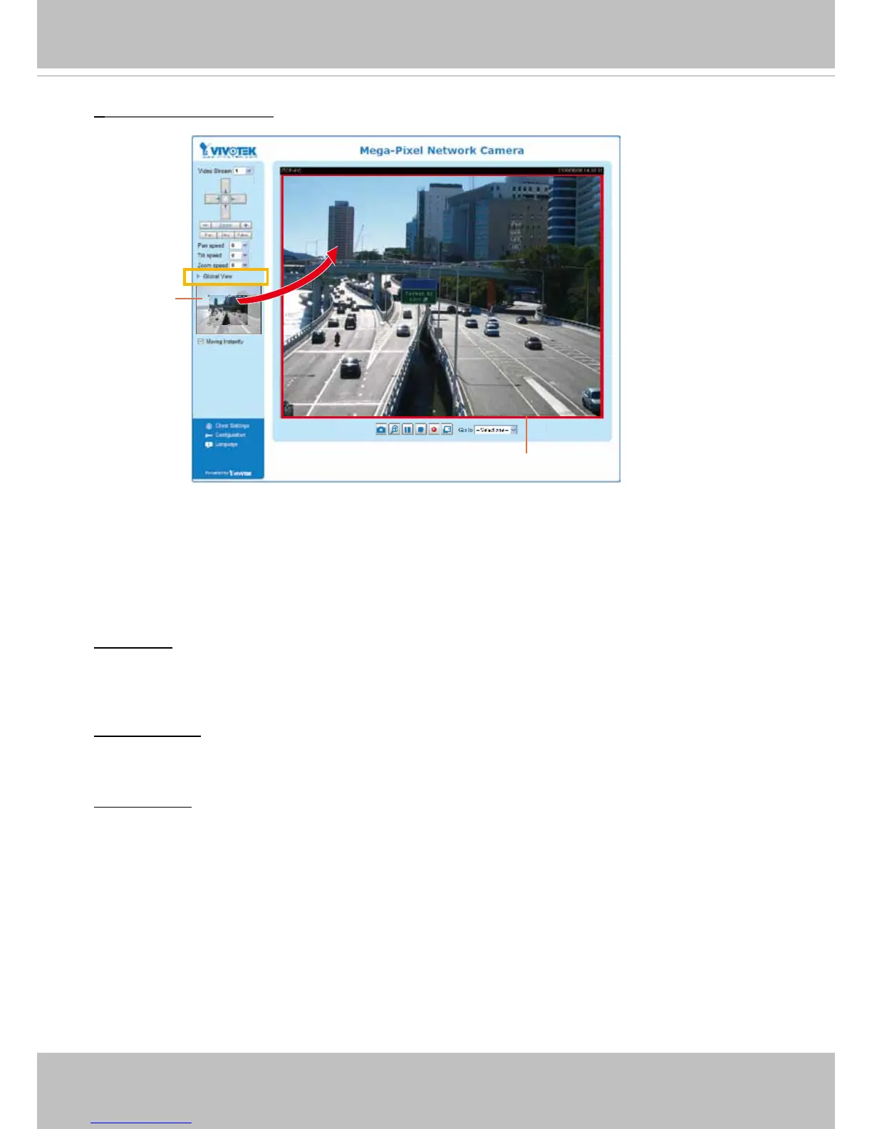 The e-PTZ function also supports “Click on Image“� When you click on any point of the Global View