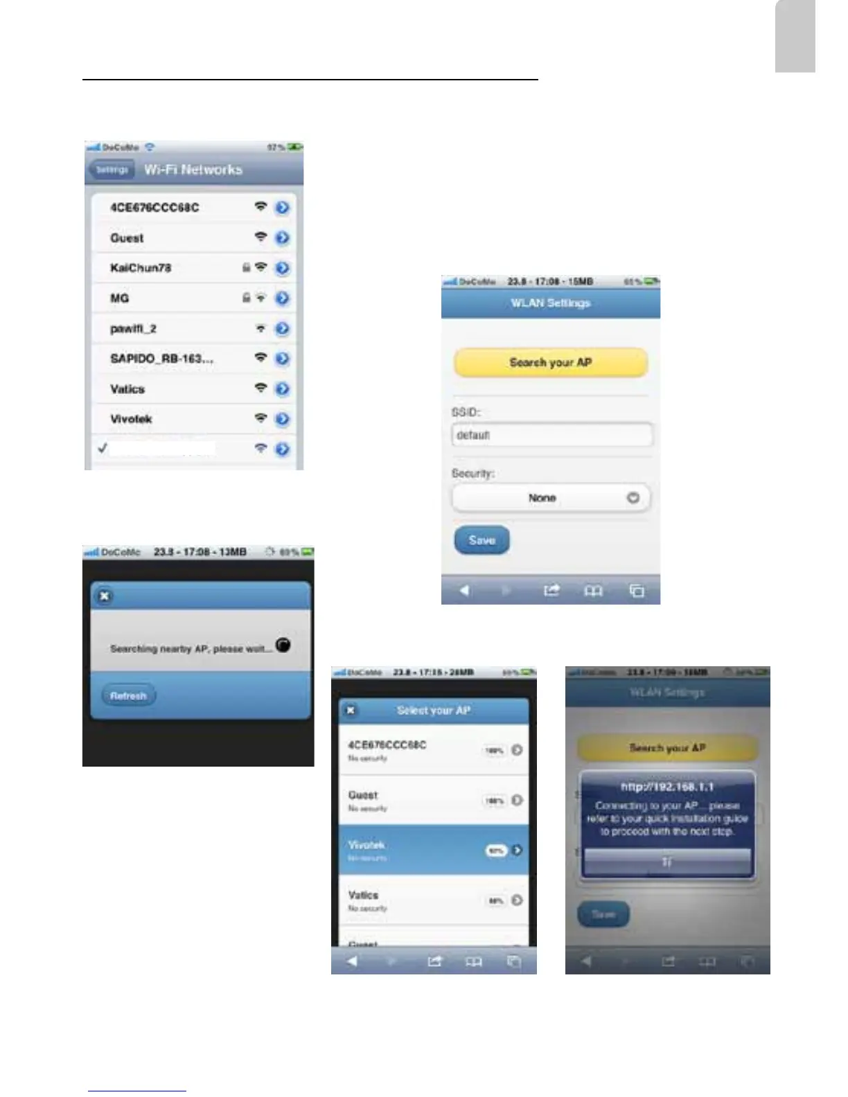 initially operates in the AP mode. Screen captures have been taken from an iPhone®.