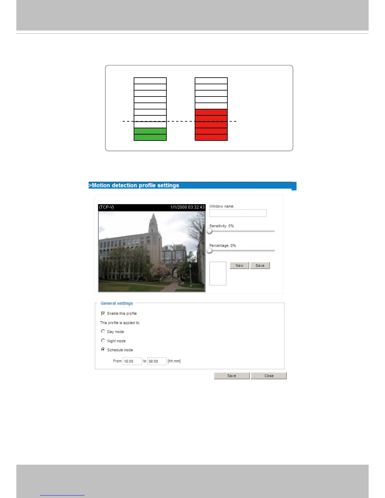 click Prole to open the Motion Detection Prole Settings page as shown below. A total of three motion