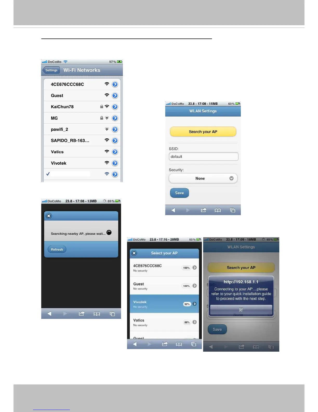 initially operates in the AP mode� Screen captures have been taken from an iPhone