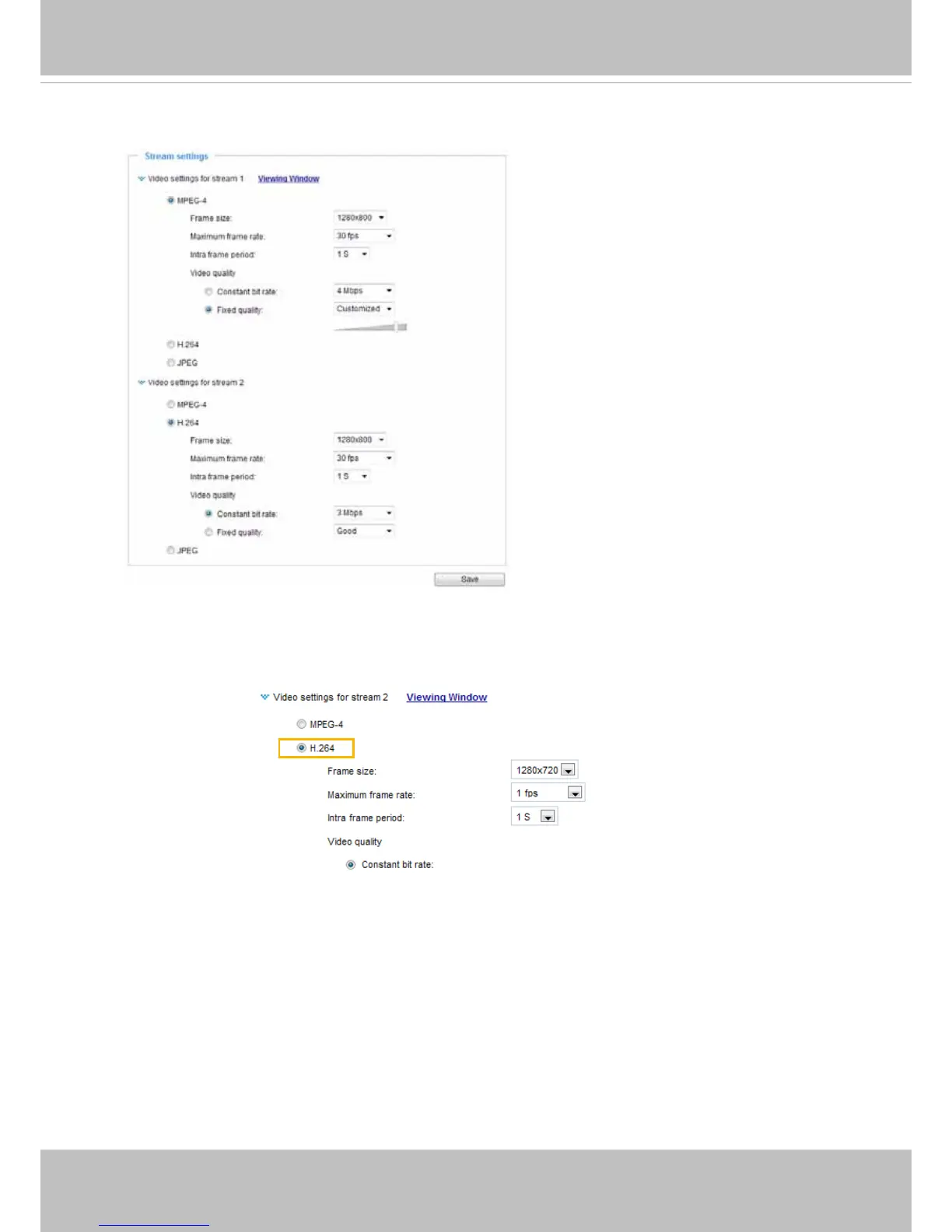 Codec) for real-time viewing� If H.264 / MPEG-4 mode is selected, the video is streamed via RTSP