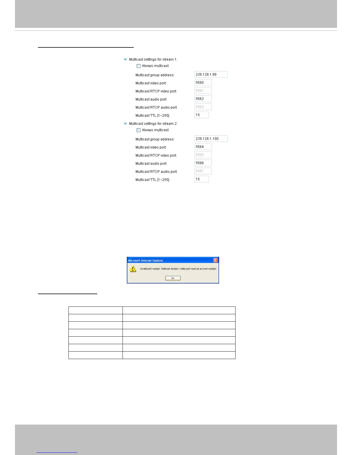 The port numbers can be changed to values between 1025 and 65535� The multicast RTP port must