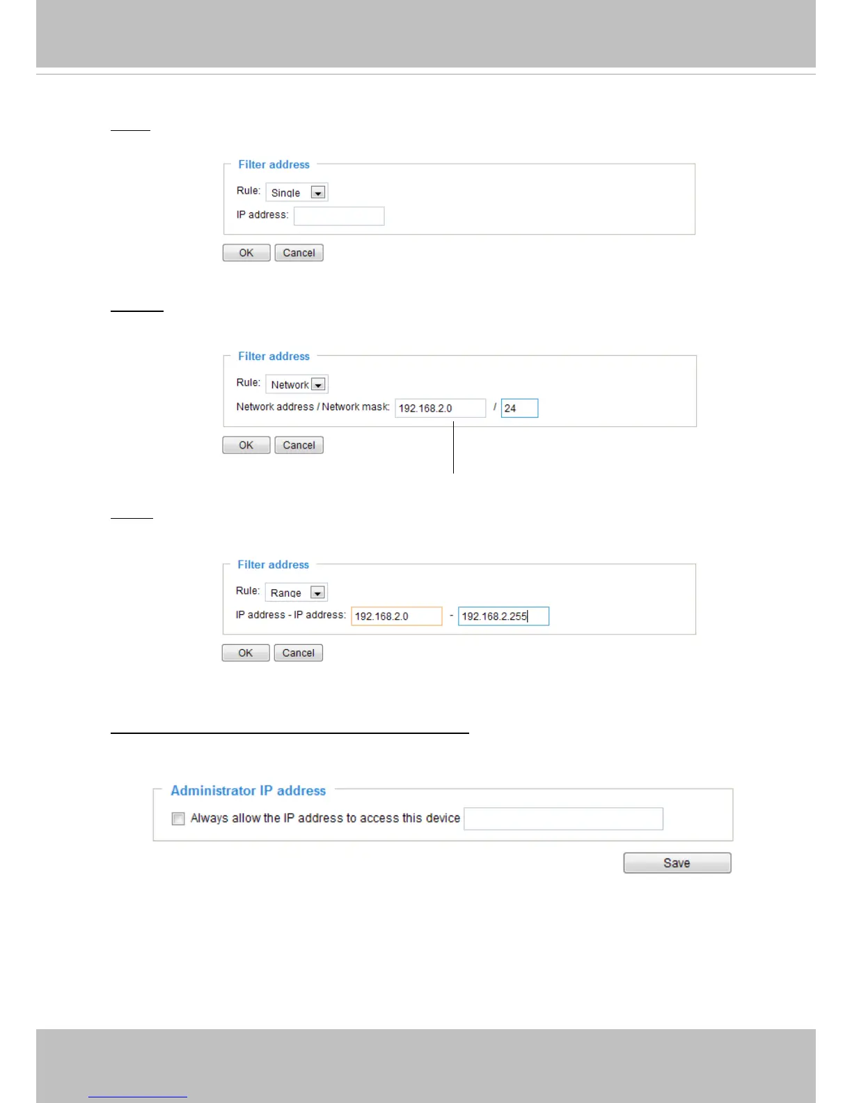 Administrator’s IP address in this eld to make sure the Administrator can always connect to the
