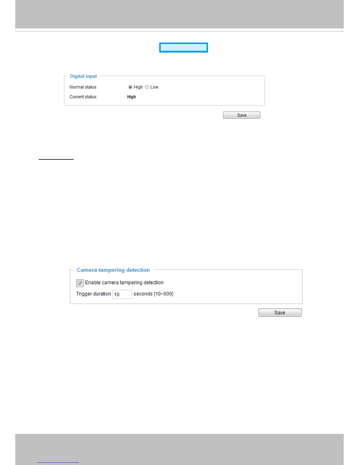 Digital input: Select High or Low as the state of the signal to dene the "Normal status" for the