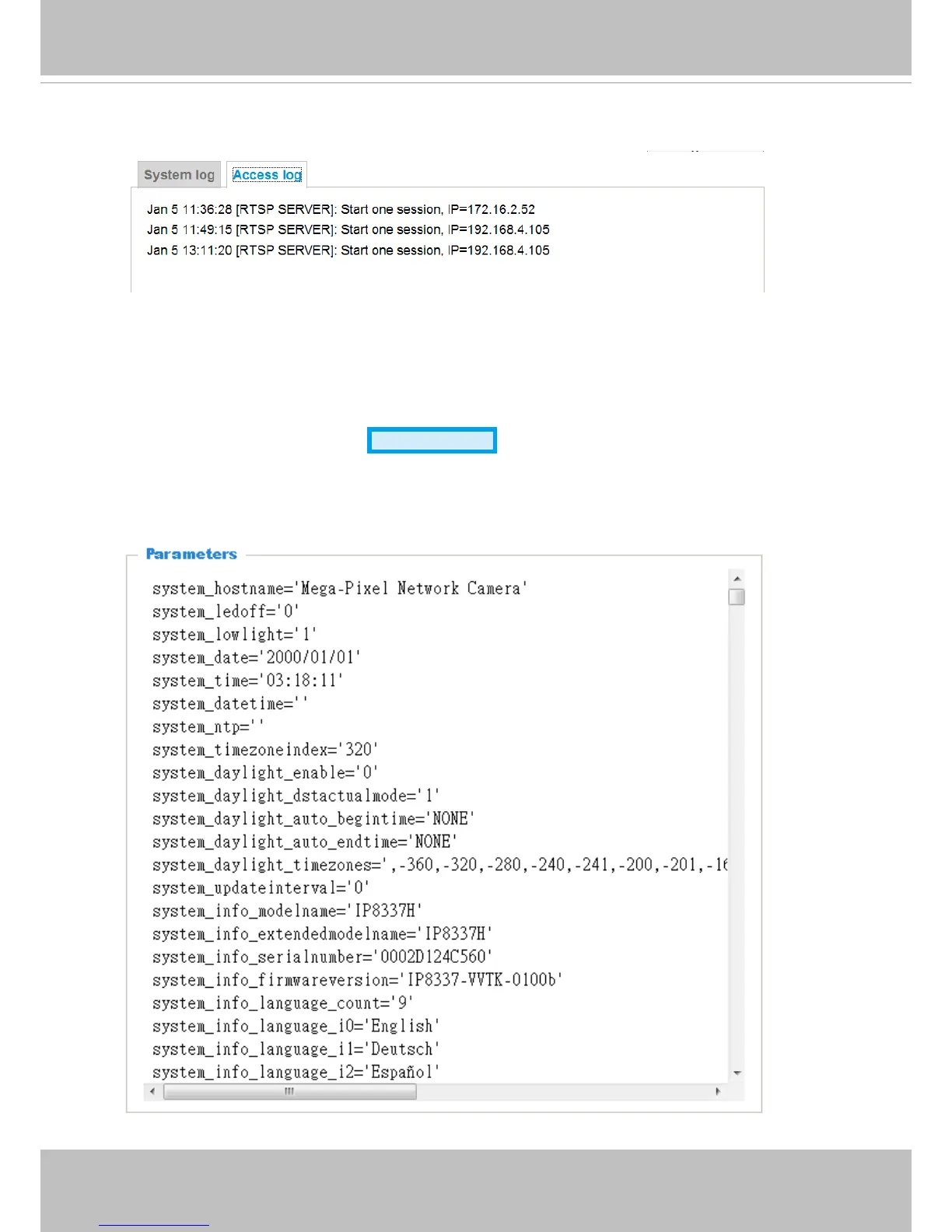administrators) in a chronological order. The access log is stored in the Network Camera’s buffer