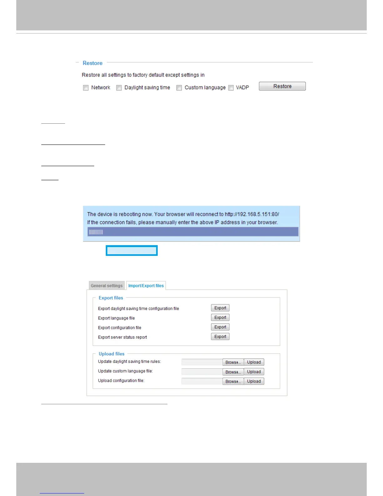 This feature allows you to Export / Update daylight saving time rules, custom language le, conguration