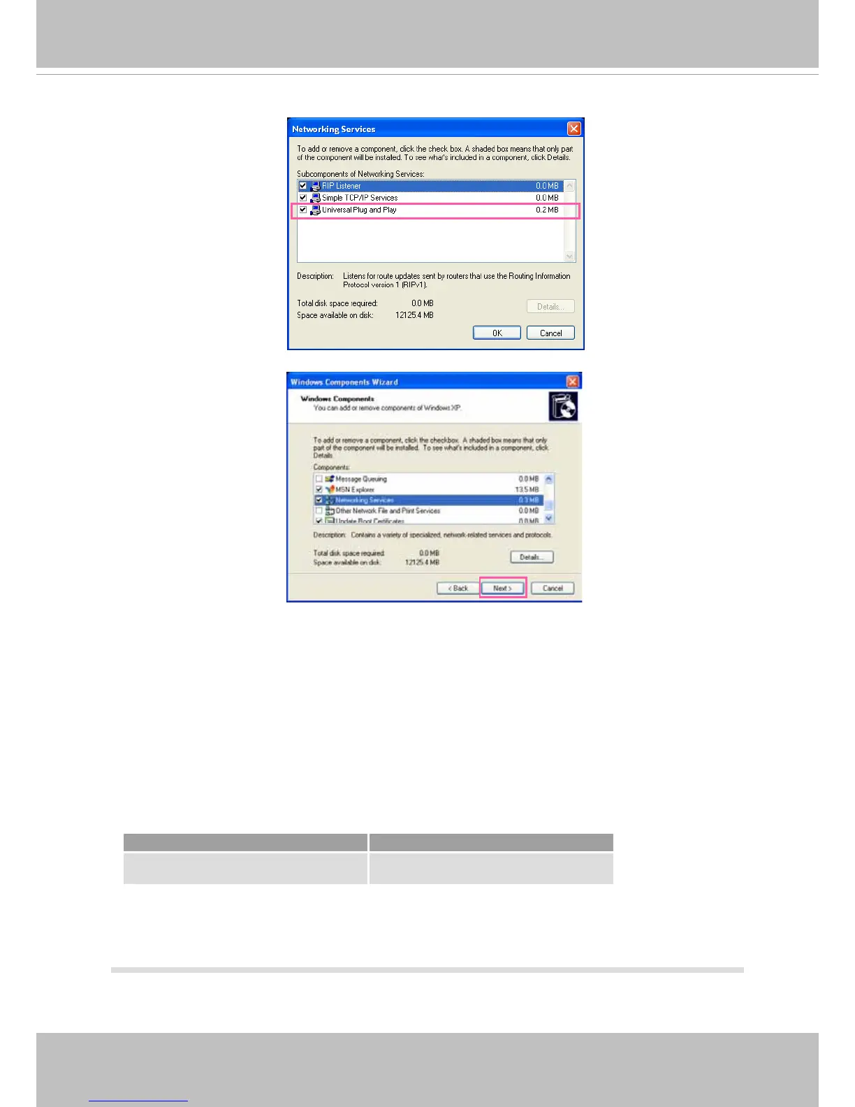 4. In the Networking Services dialog box, select Universal Plug and Play and click OK.