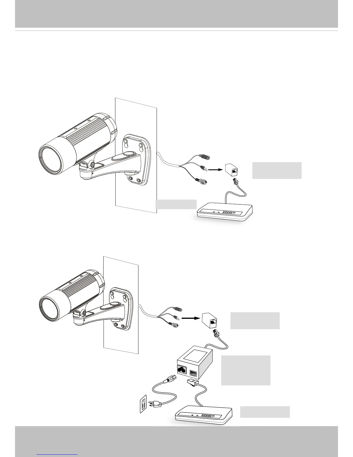 Use a PoE power injector (optional) to connect between the Network Camera and a non-PoE