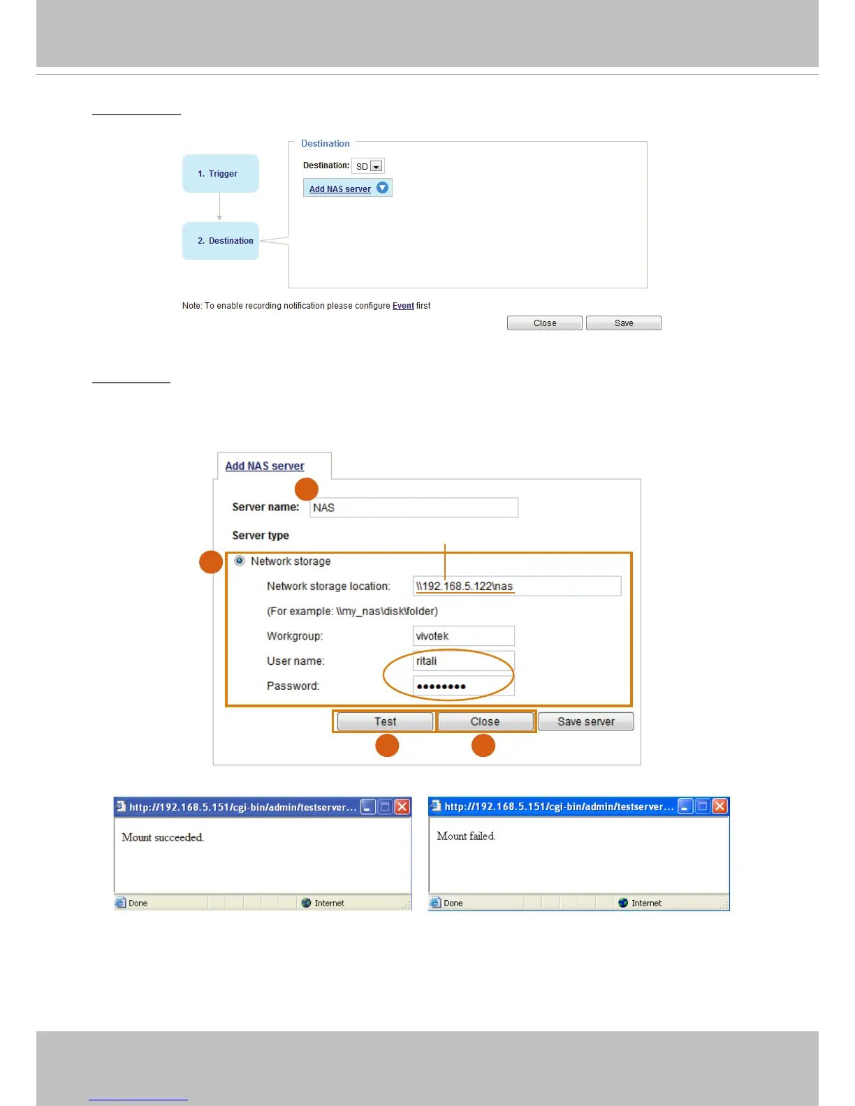 Click Add NAS server to open the server setting window and follow the steps below to set up: