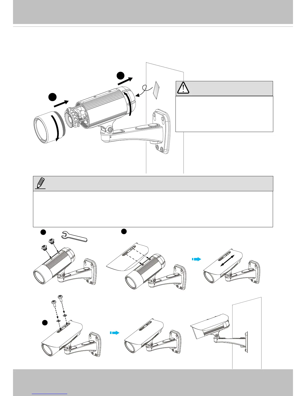 2� Attach the supplied sun shield to the Network Camera and slide it to the desired position�