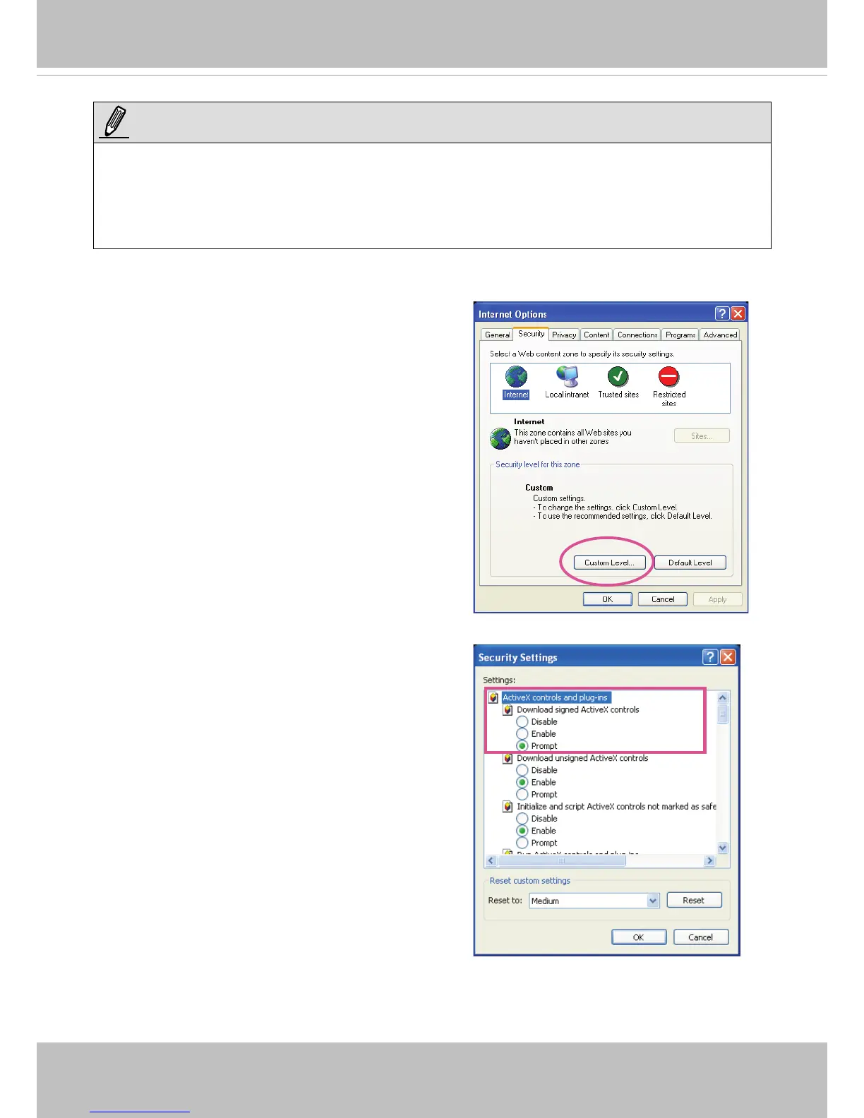 2� If you see a dialogue box indicating that your security settings prohibit running ActiveX