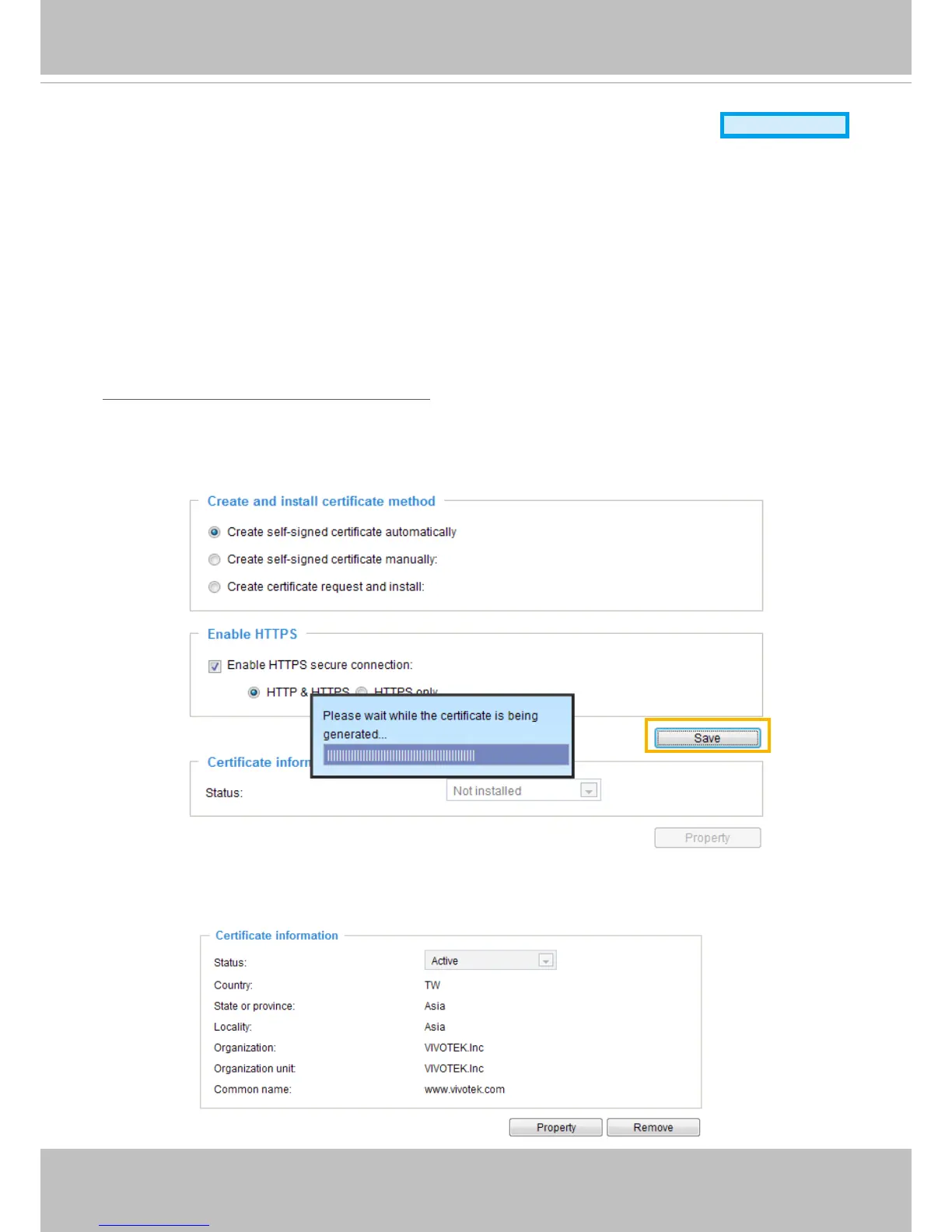 Before using HTTPS for communication with the Network Camera, a Certicate must be created rst.