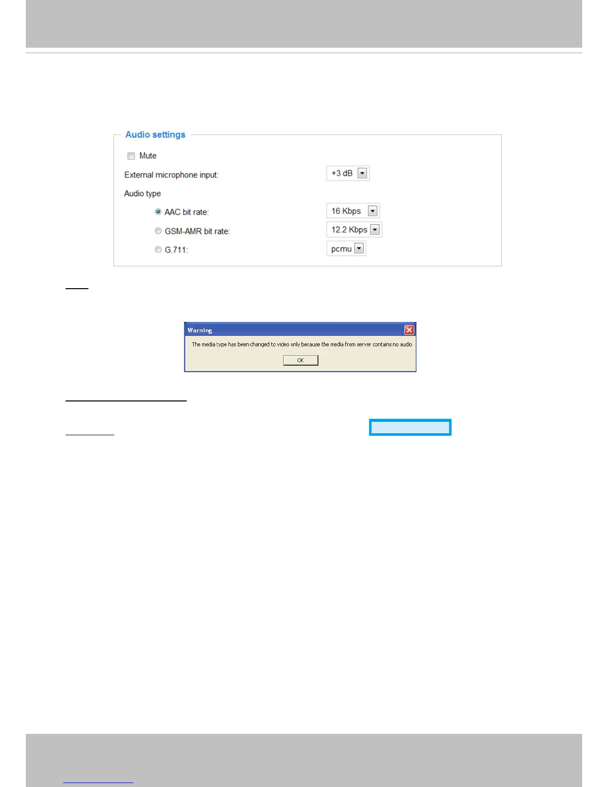 Audio type: Select audio codec AAC or GSM-AMR and the bit rate