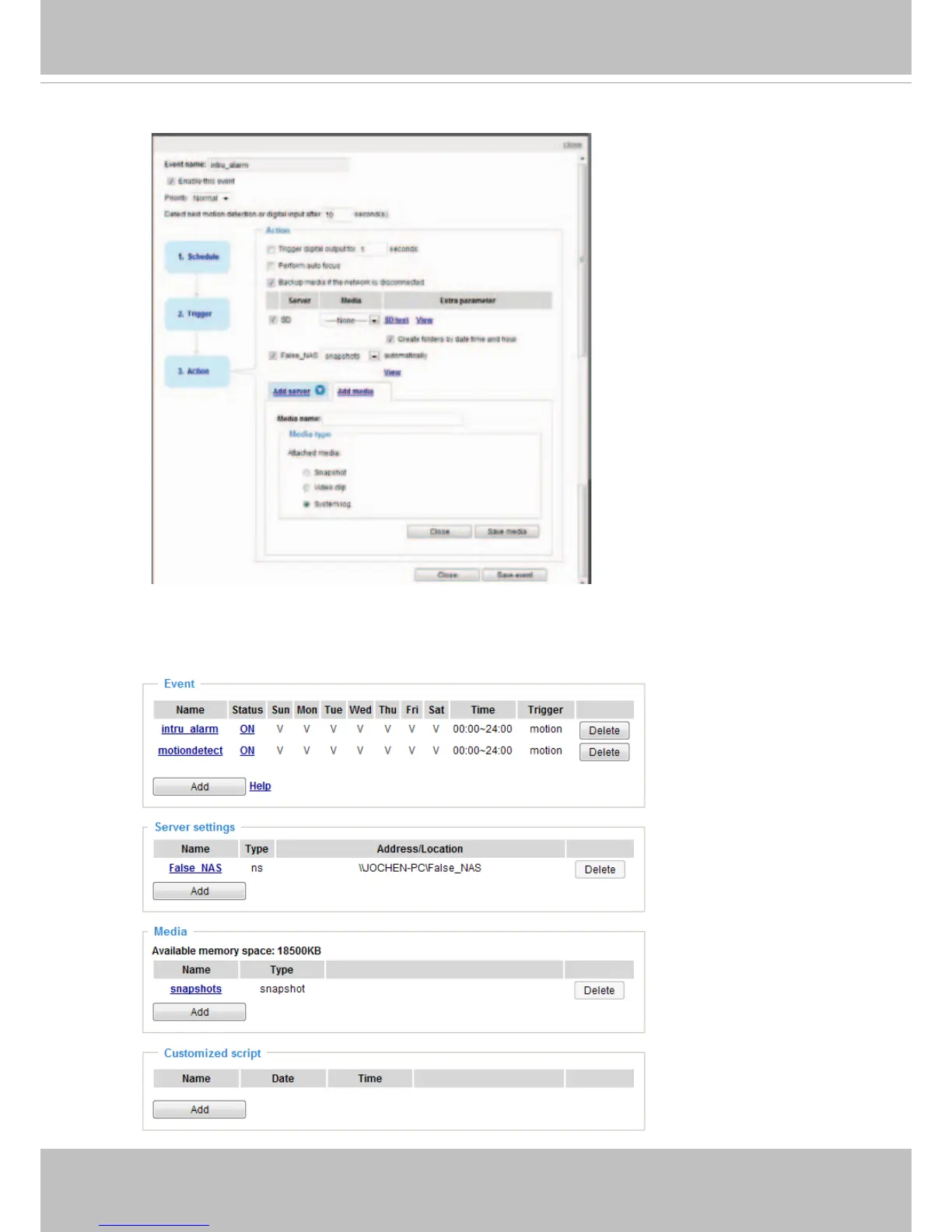 The following is an example of the Event setting page: