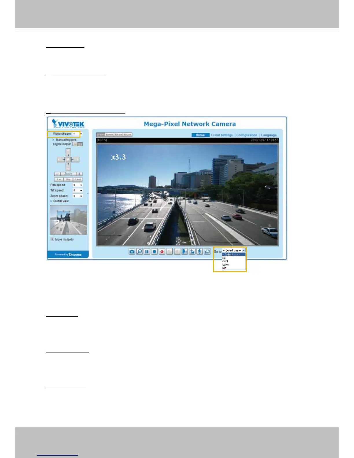 Select Stream: Select stream #1 to set up the e-PTZ control. Please note that each stream can