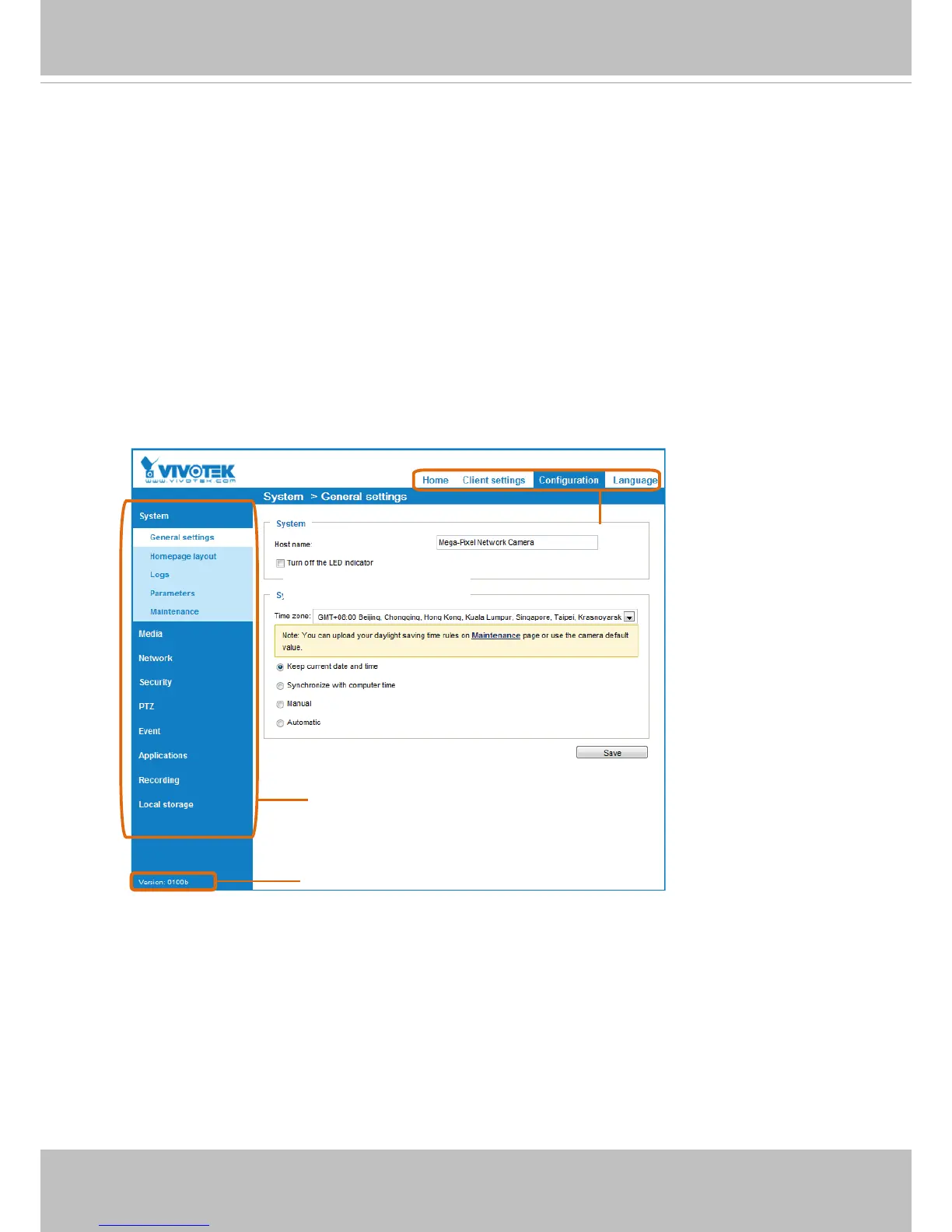 Click Configuration on the main page to enter the camera setting pages. Note that only