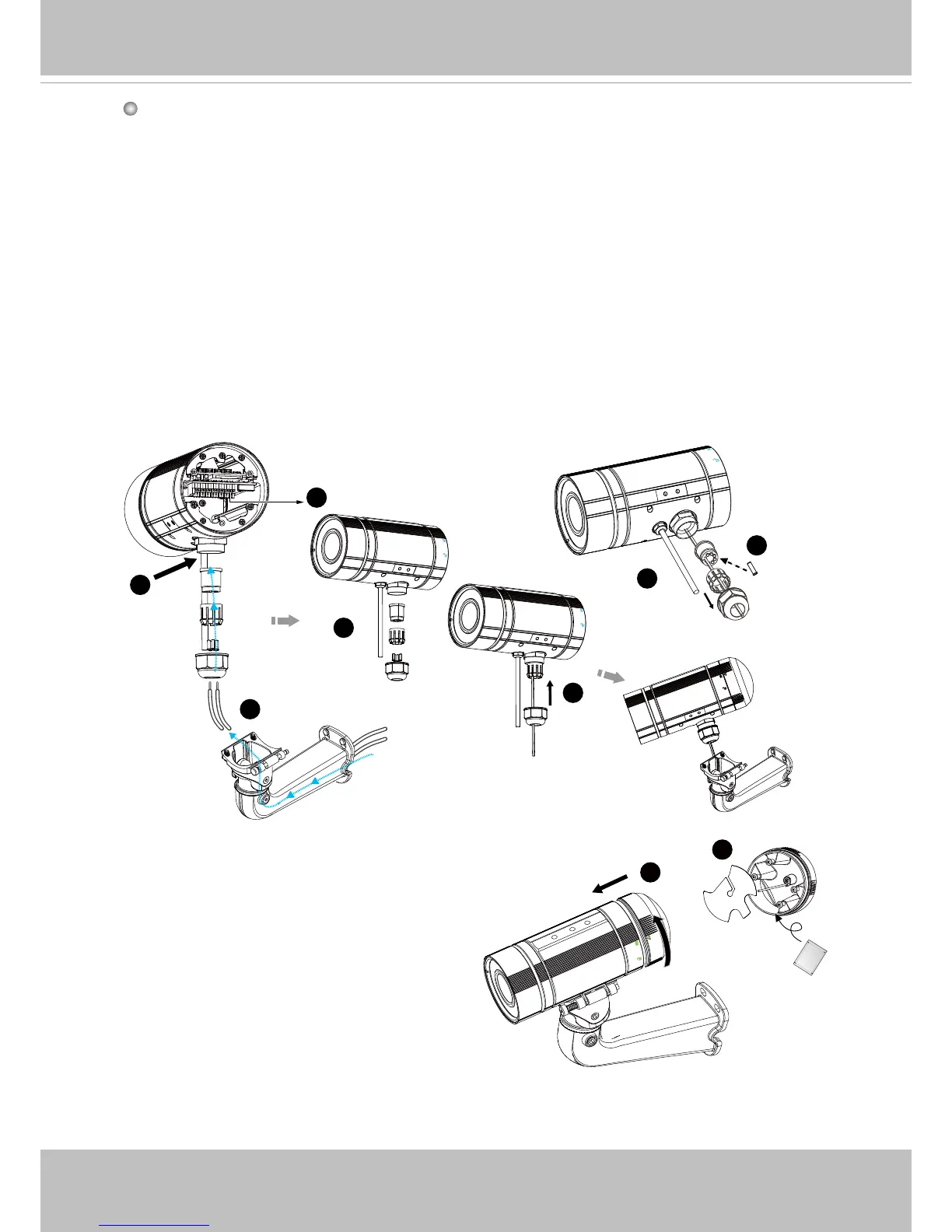 wall mount bracket and the waterproof connector (E --> D --> B --> A) as the illustration