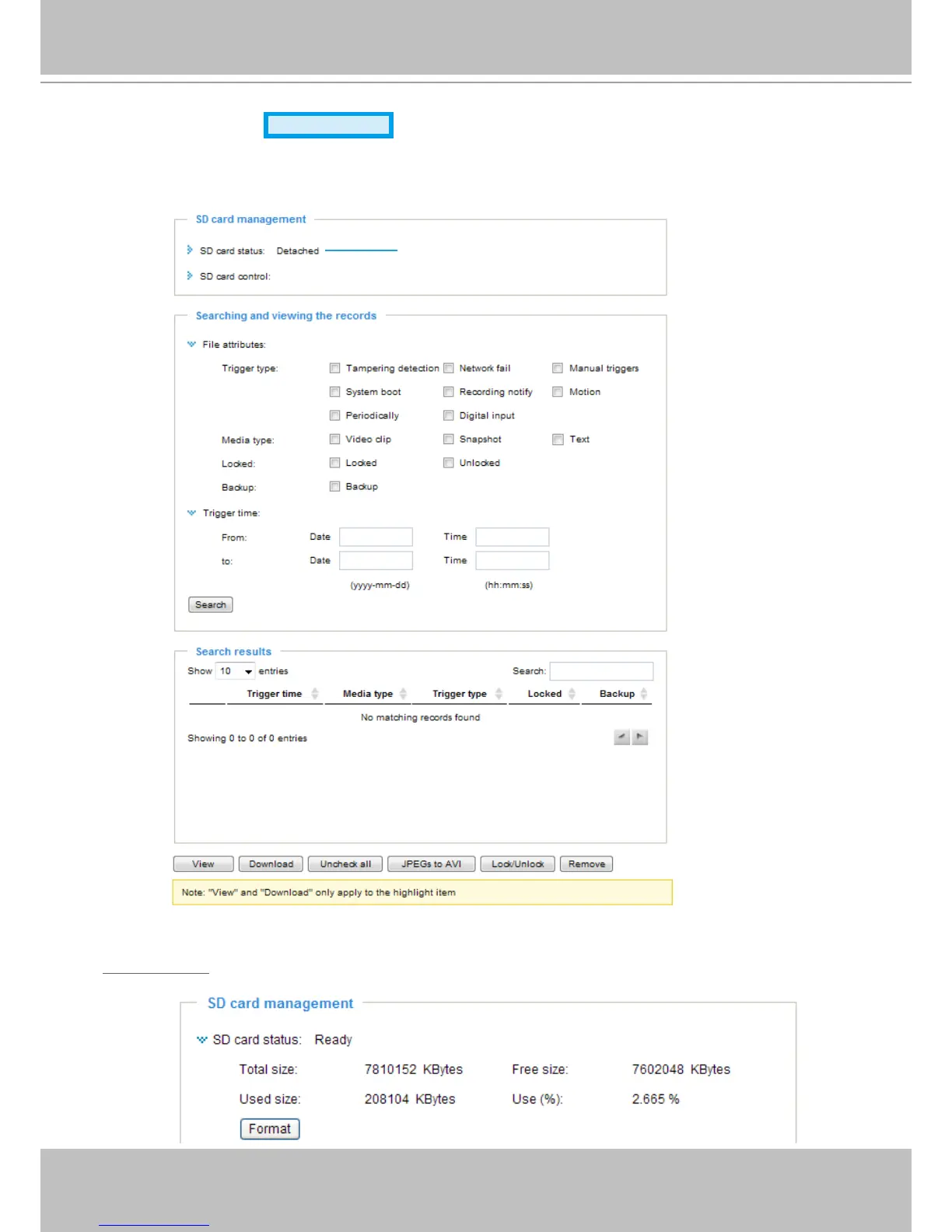 This section explains how to manage the local storage on the Network Camera. Here you can