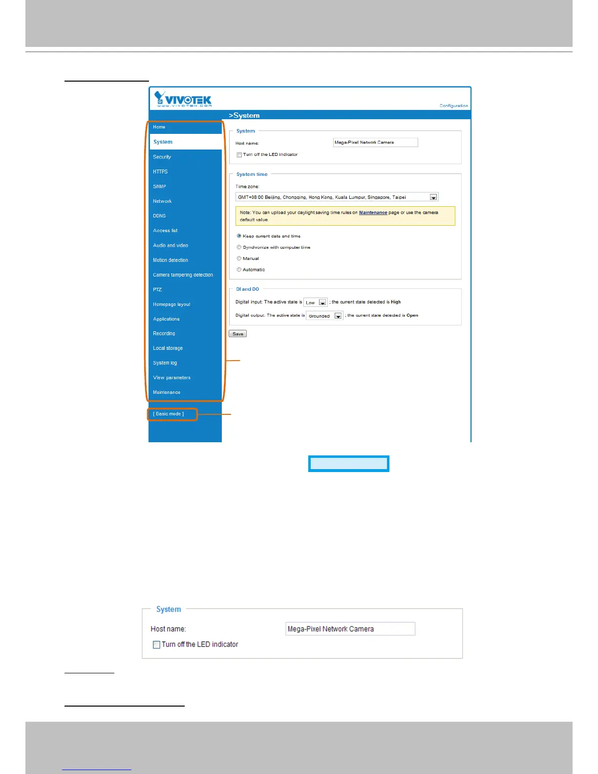 Host name: Enter a desired name for the Network Camera. The text will be displayed at the top of the