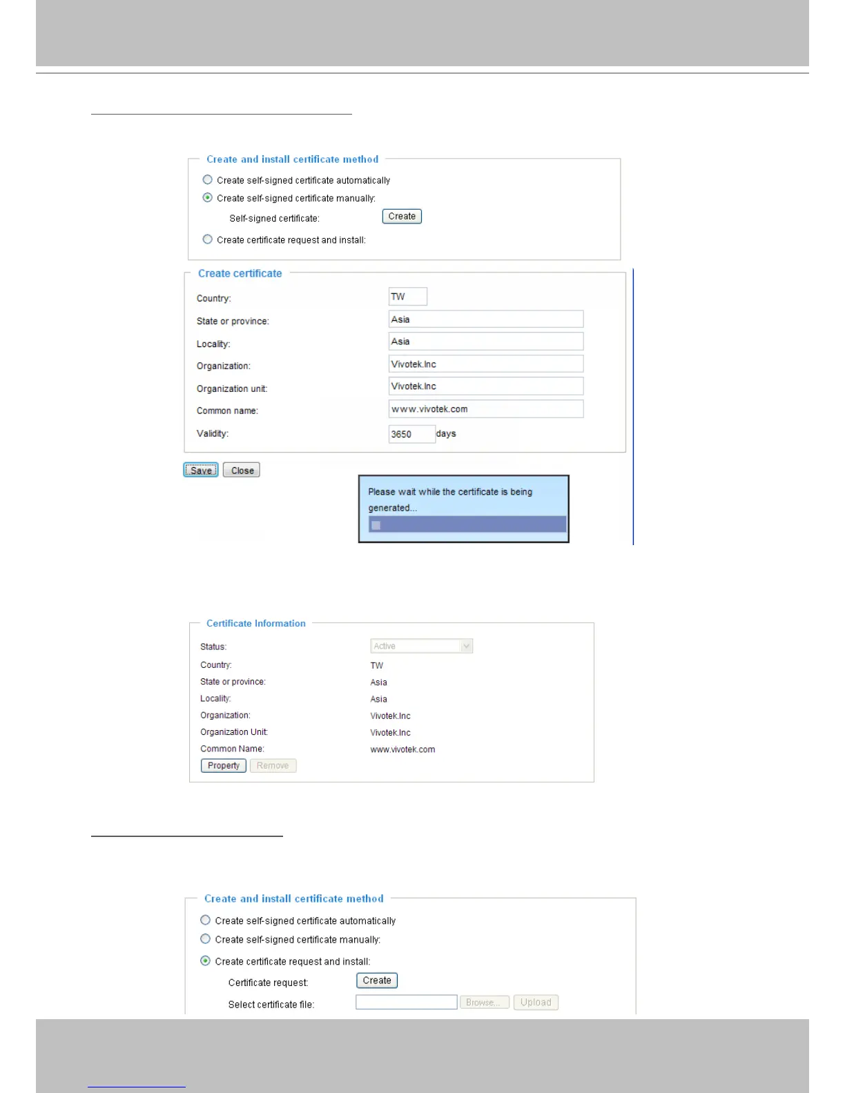 Create certificate and install : Select this option if you want to create a certicate from a certicate