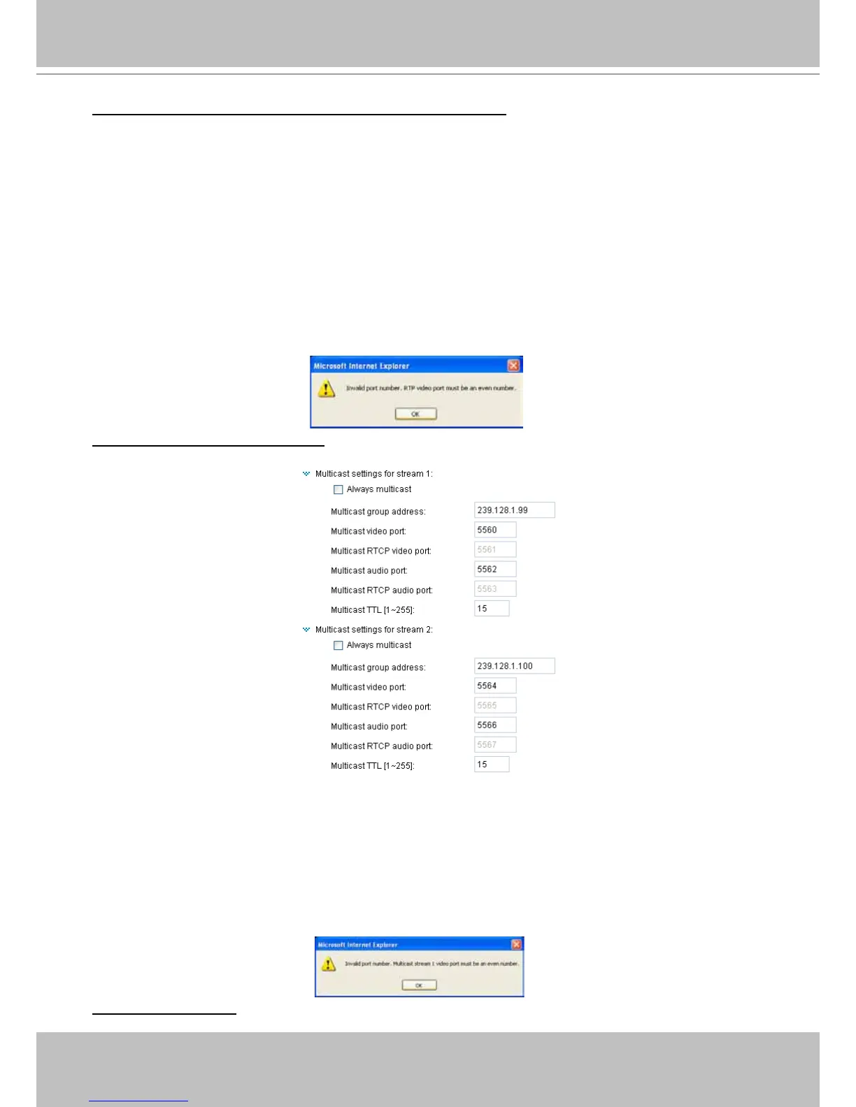 If the multicast RTP video ports are incorrectly assigned, the following warning message will be