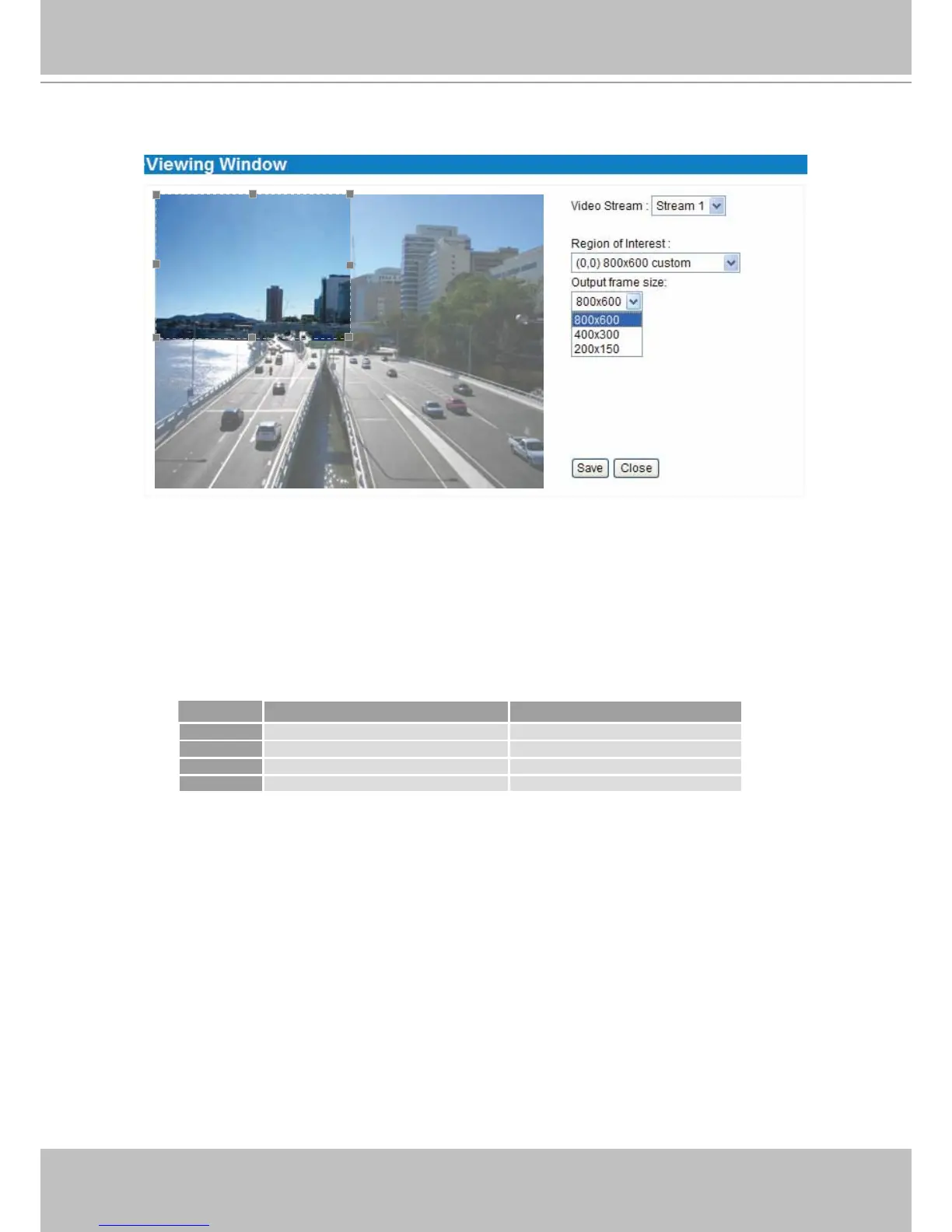 of Interest and the Output Frame Size for streams 1 ~ 3.