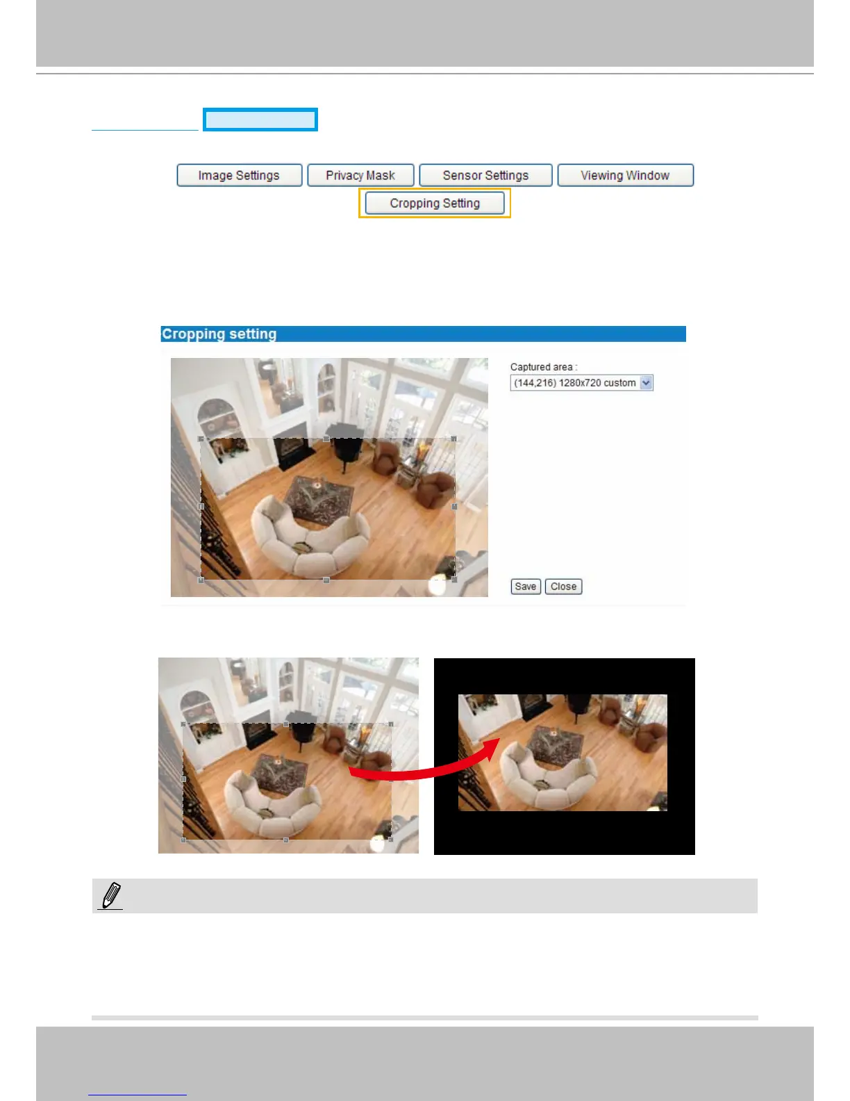 ► Selecting cropping mode will clear the settings in the Viewing Window and disable Motion Detection,