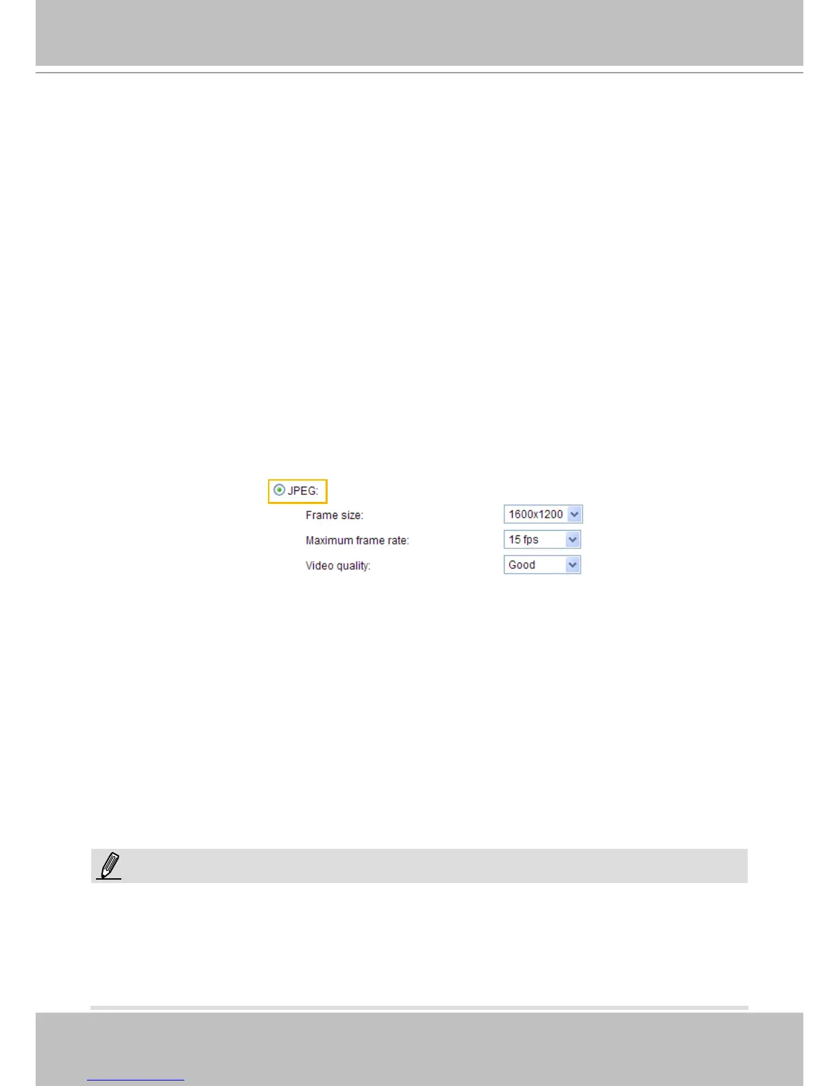 If JPEG mode is selected, the Network Camera continuously sends JPEG images to the client, producing