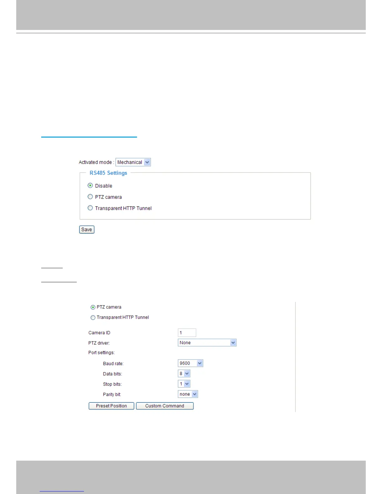 interface rst. Then you can congure the PTZ driver and RS485 port with the following settings.