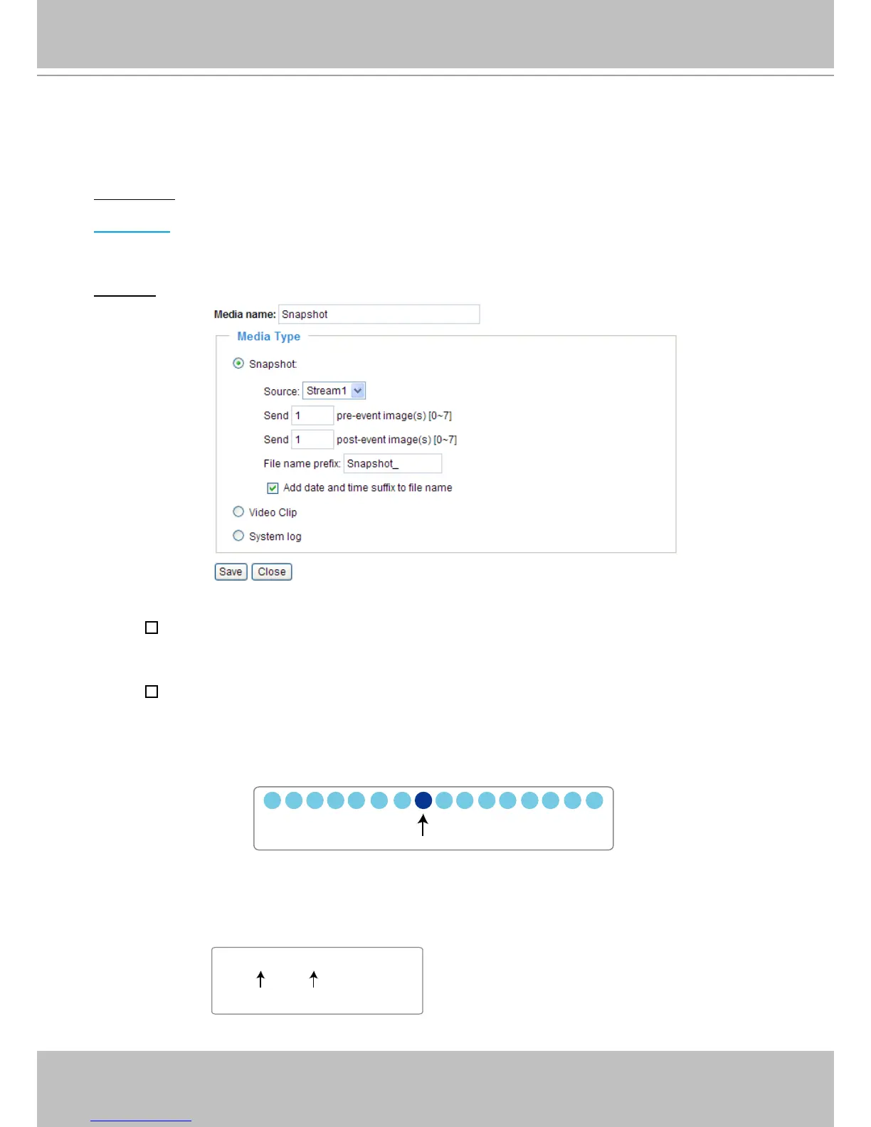 There are three choices of media types available: Snapshot, Video Clip, and System log.
