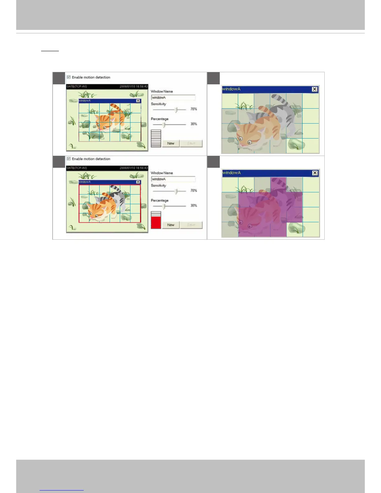 There are two motion detection parameters: Sensitivity and Percentage. In the illustration above,