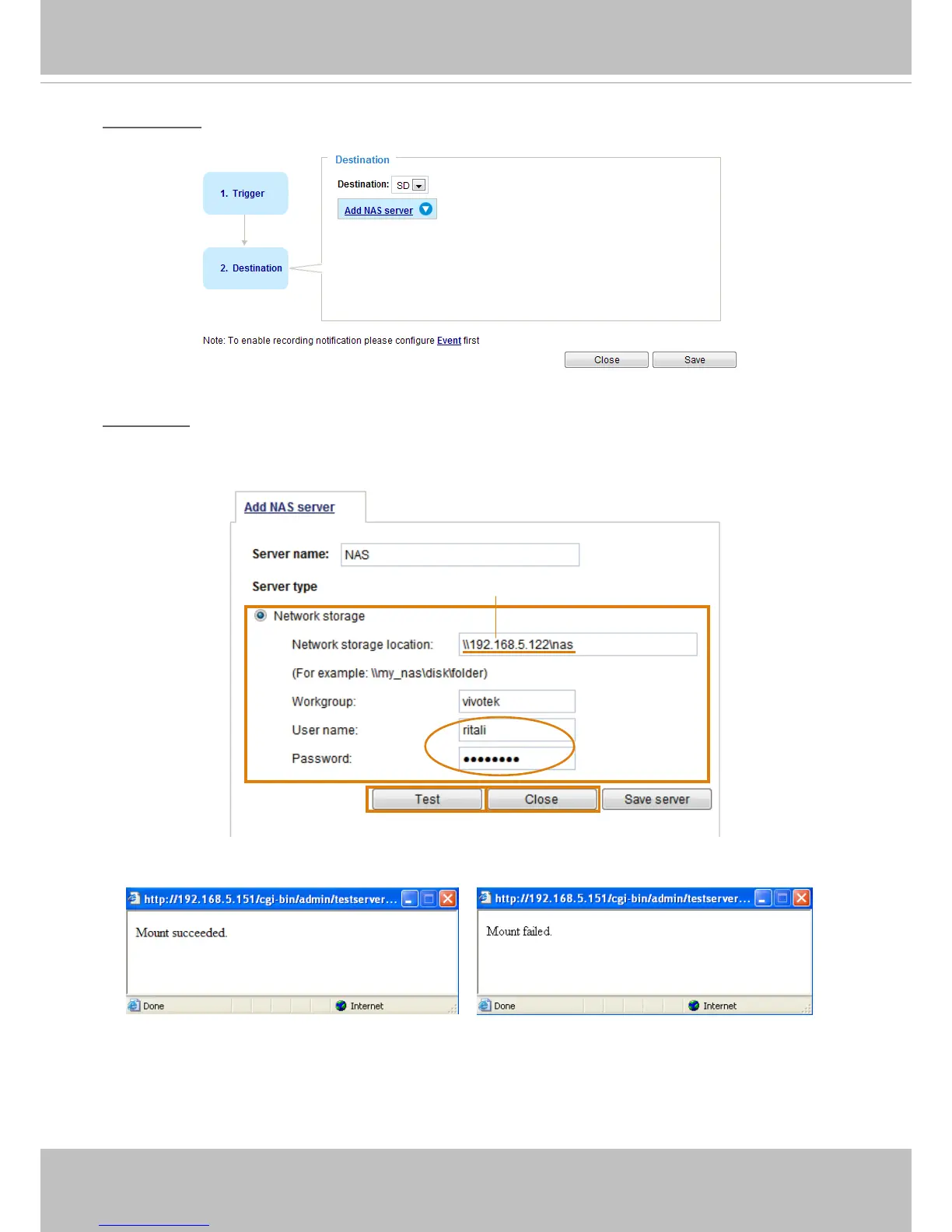 You can select the SD card or network storage (NAS) for the recorded video les.