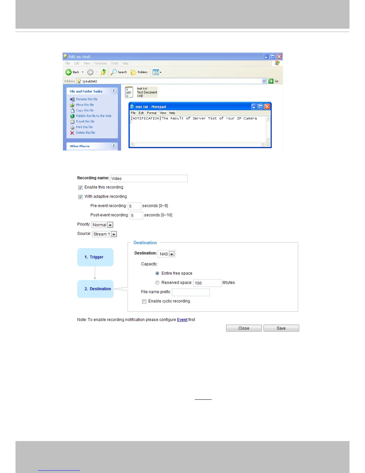 this page. When the system begins recording, it will send the recorded les to the network storage or SD