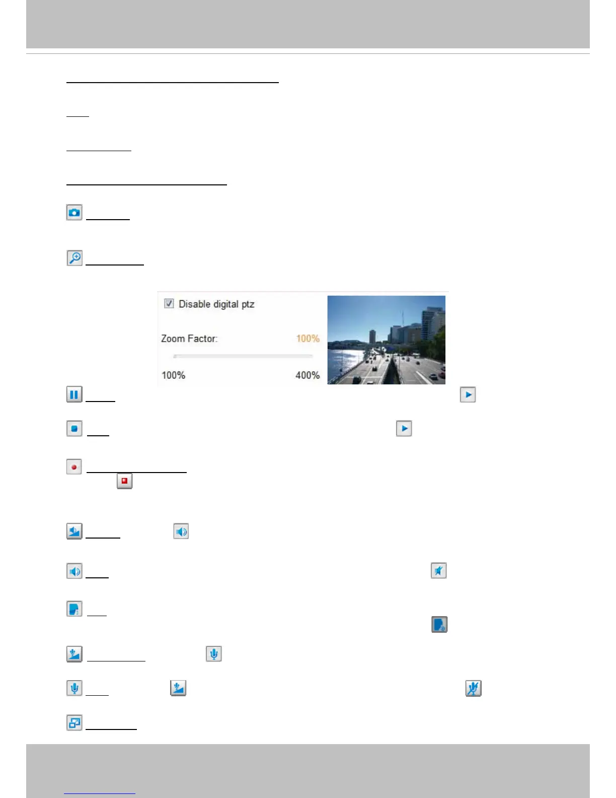 Video and Audio Control Buttons: Depending on the Network Camera model and Network Camera