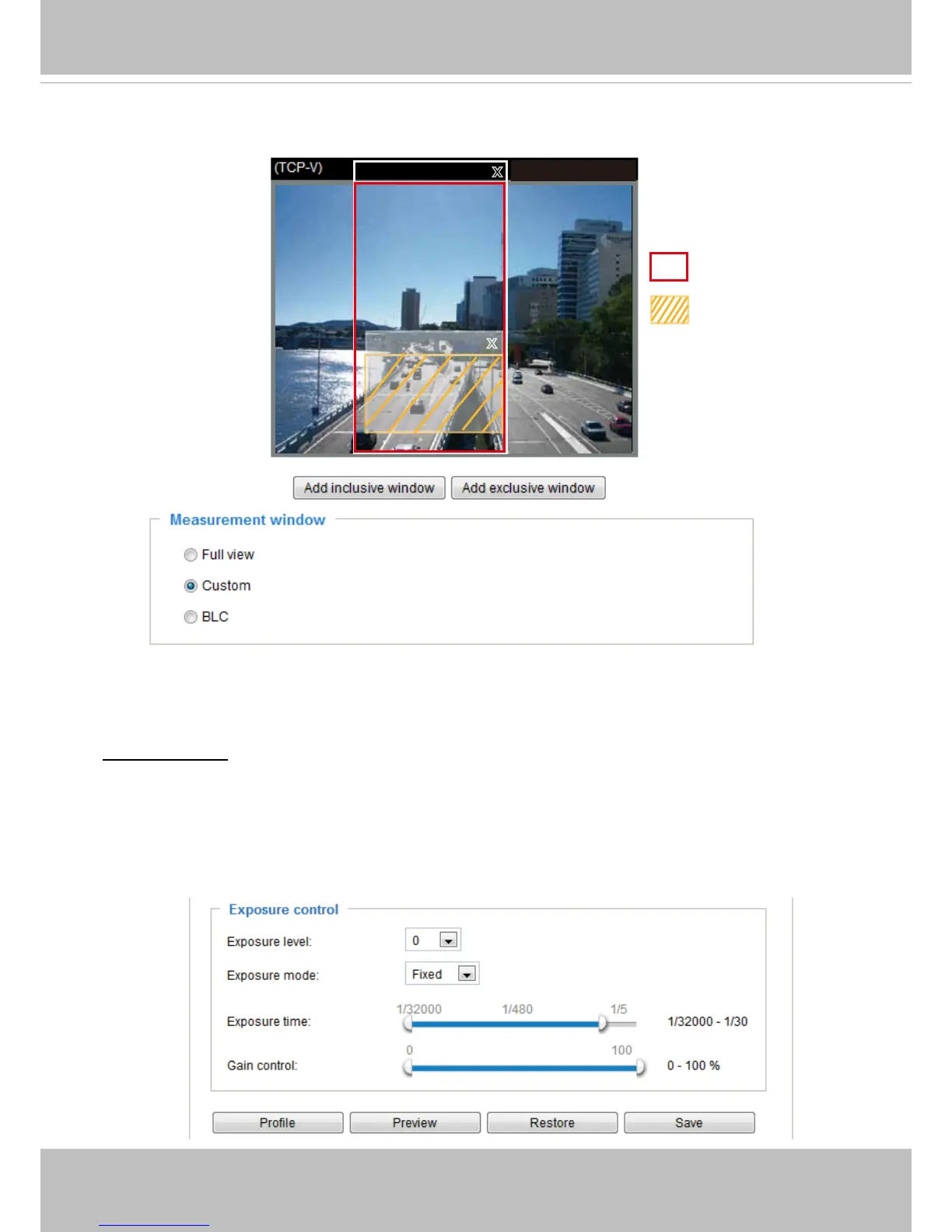 Exposure time and Gain Control to the best image quality. Short exposure time will let less light into