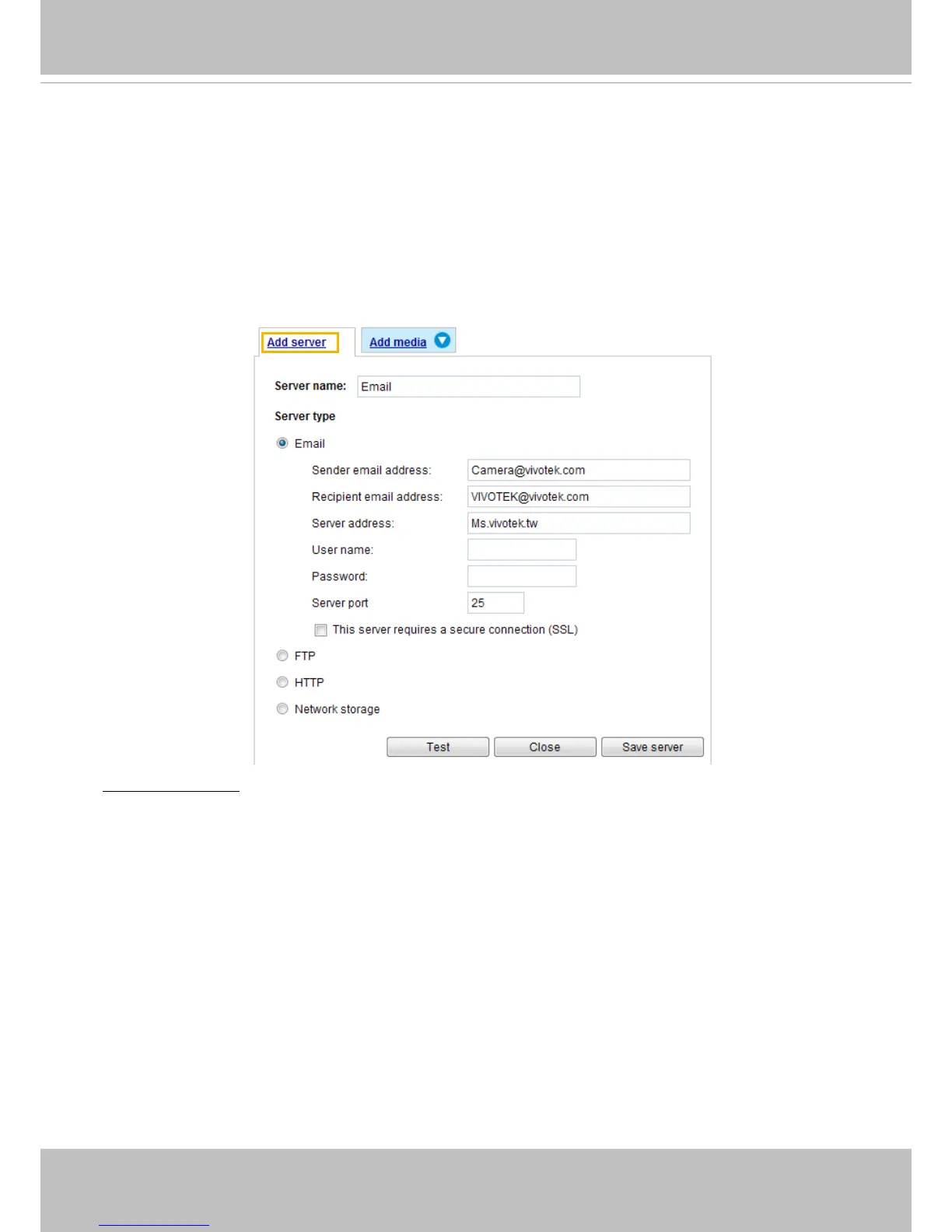 To set an event with recorded video or snapshots, it is necessary to configure the server and media